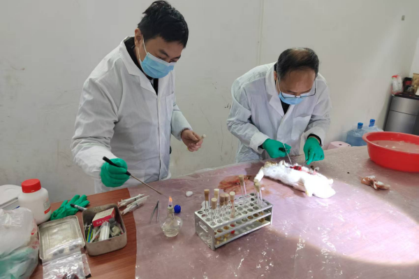 为明确死亡原因,专家团队对病死兔进行现场解剖,并采集病例样品开展实验室检测及诊断分析。经现场初步研判,已排除兔瘟等重大传染性疾病风险,确定4家养殖场商品兔死亡原因均为消化道感染引发腹泻所致。针对该情况,专家现场制定治疗方案,详细向养殖户讲解治疗措施、药物选用标准及使用方法,有效遏制病情扩散。