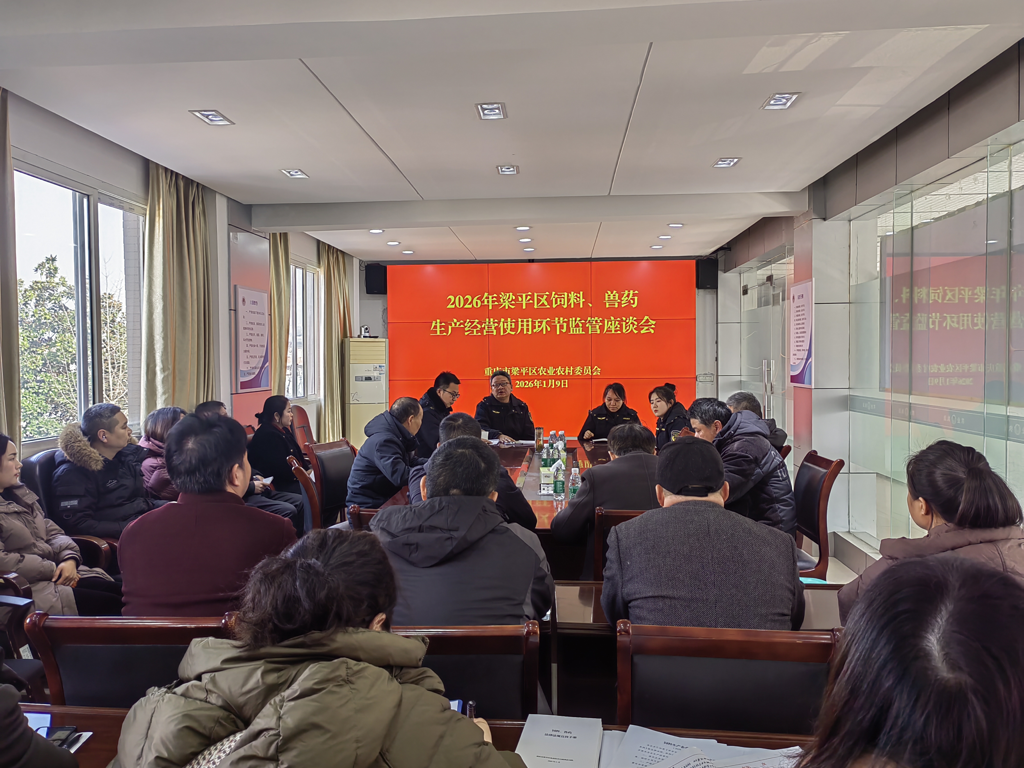 近日,梁平区农业综合行政执法支队组织召开2026年全区饲料兽药生产经营使用环节监管座谈会,旨在进一步规范行业秩序,强化主体责任,保障农产品质量安全,推动畜牧业健康发展。全区饲料生产企业、兽药经营单位以及动物诊疗机构负责人共40余人参会。