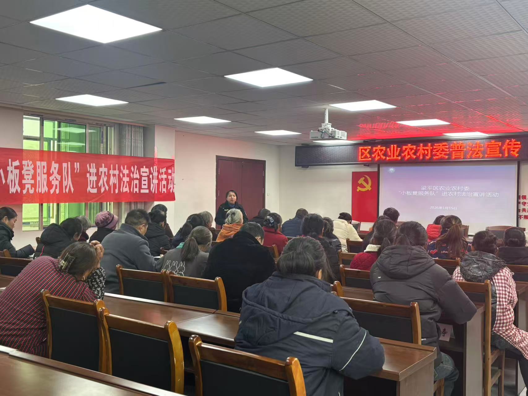 1月14日至15日,梁平区组织农业执法普法“小板凳服务队”深入碧山镇龙桥村、袁驿镇邵兴村,开展普法宣传与农村学法用法示范户“结对子”活动,将农业投入品使用、畜产品质量安全、“十年禁渔”及防范农业领域非法金融知识送到群众身边。
