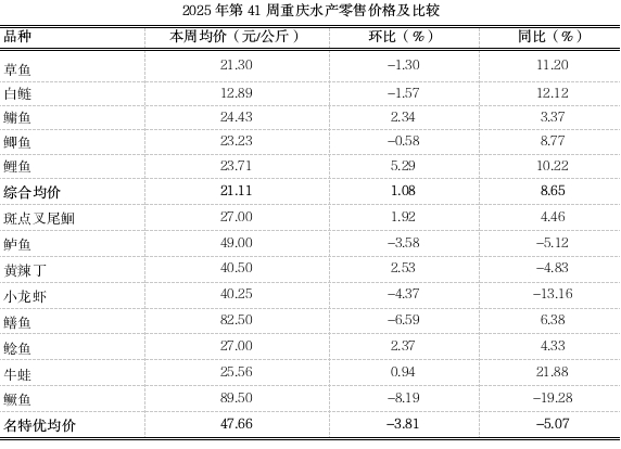 2025年第41周重庆渔业市场周报(总第137期)