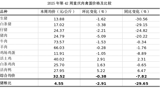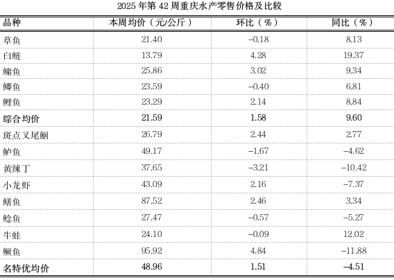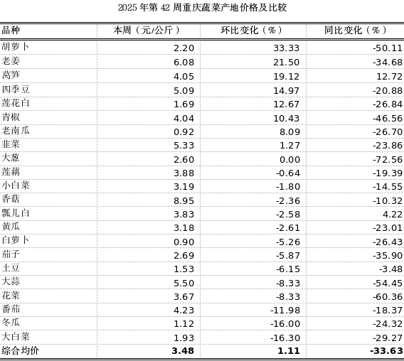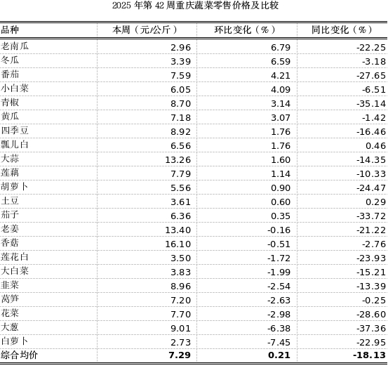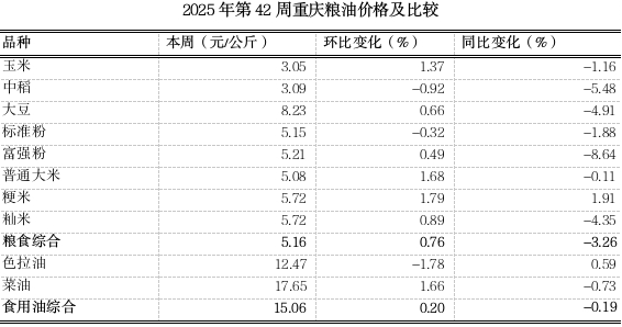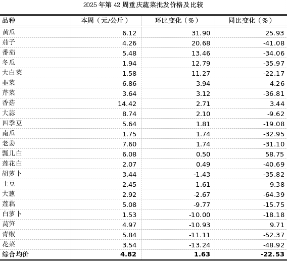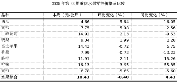 重庆农产品及农资价格周报2025年第42期(总第877期)