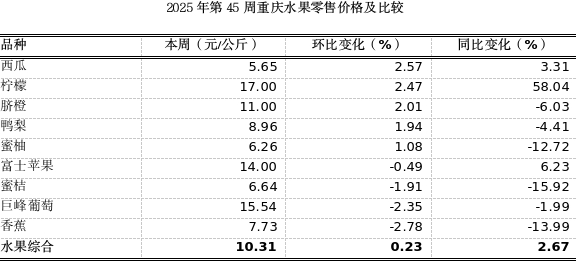 重庆农产品及农资价格周报2025年第45期(总第880期)