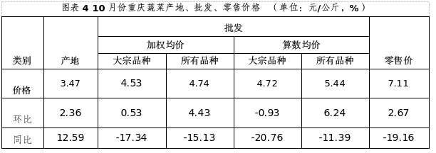 根据对双福国际农贸城监测,10月蔬菜批发交易量21.51万吨,环比略涨1.32%,同比下降8.74%。批发加权均价4.74元/公斤,环比上涨4.43%,同比明显下跌15.13%。外调主要品种:土豆、青椒、花菜、番茄。