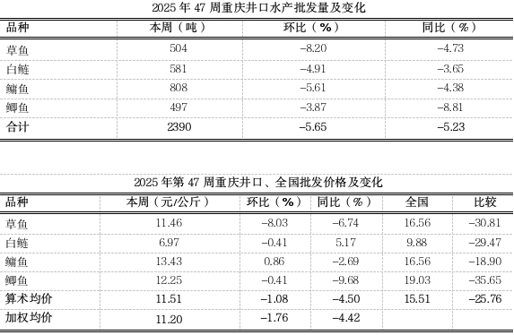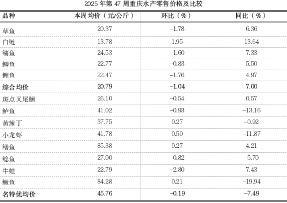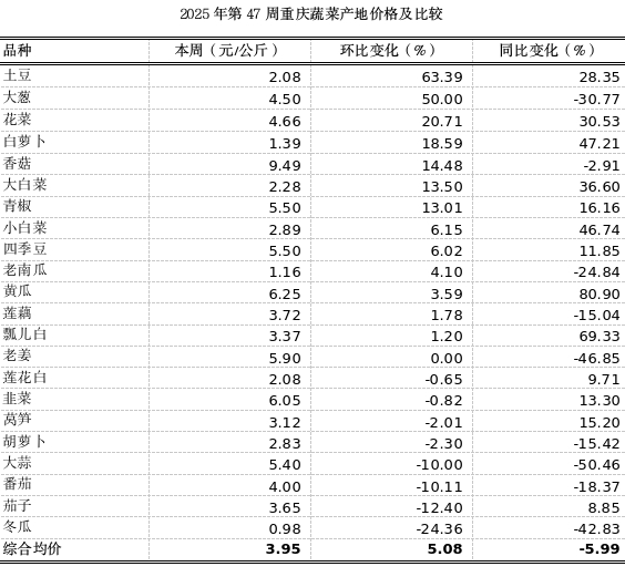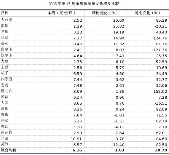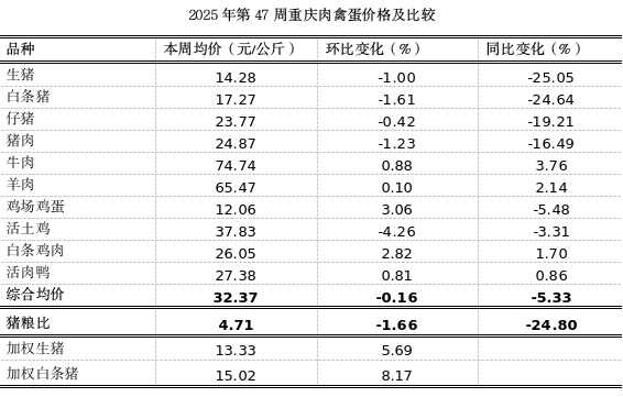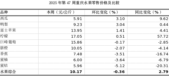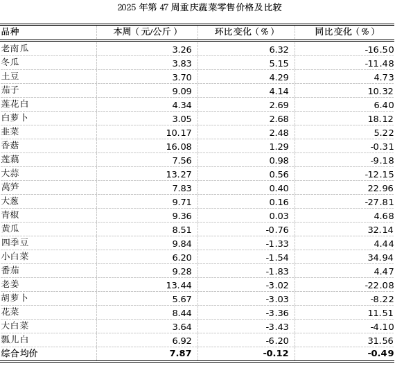 重庆农产品及农资价格周报2025年第47期(总第882期)
