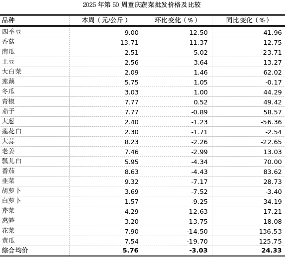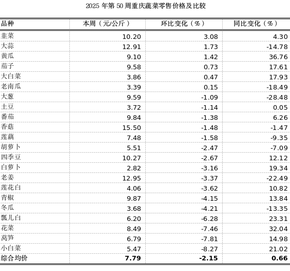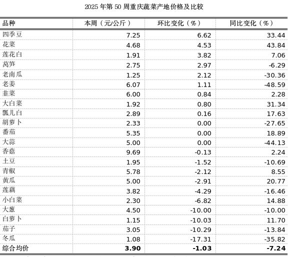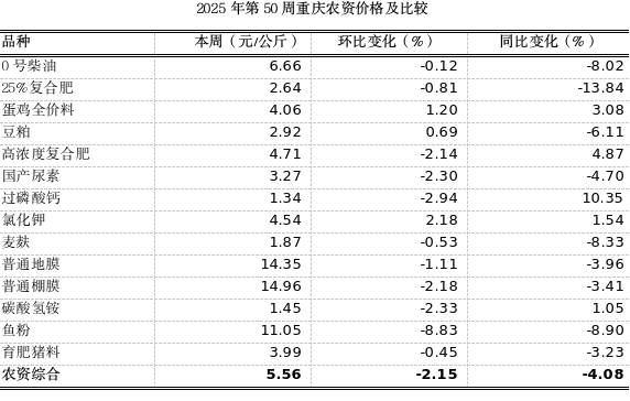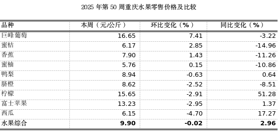 重庆农产品及农资价格周报2025年第50期(第885期)