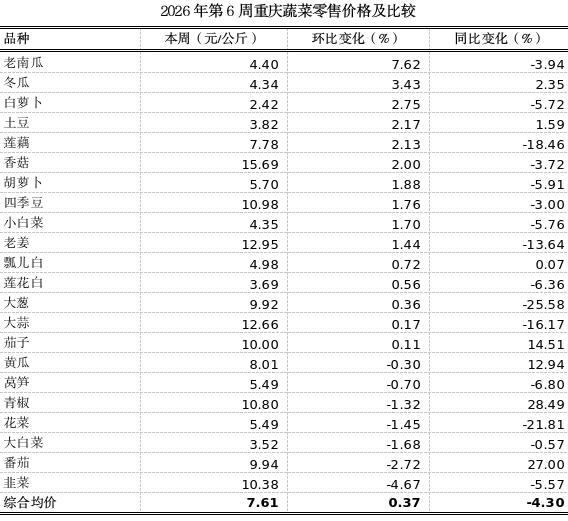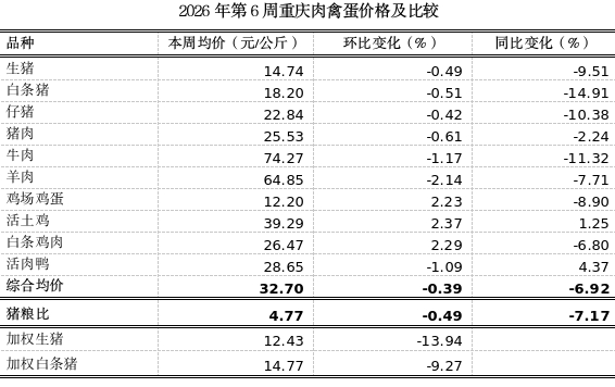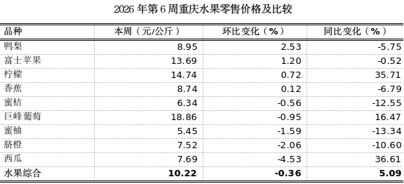 重庆农产品及农资价格周报2026年第6期(第893期)