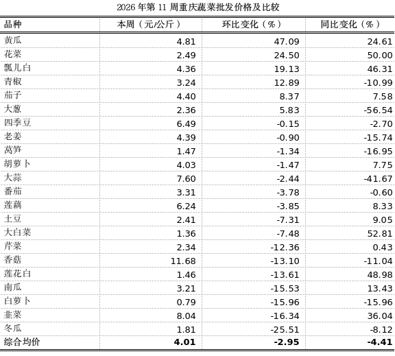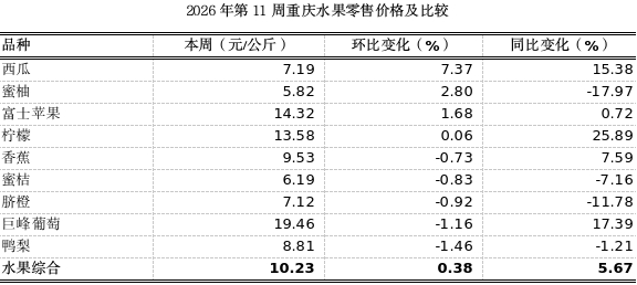 重庆农产品及农资价格周报2026年第11期(第898期)