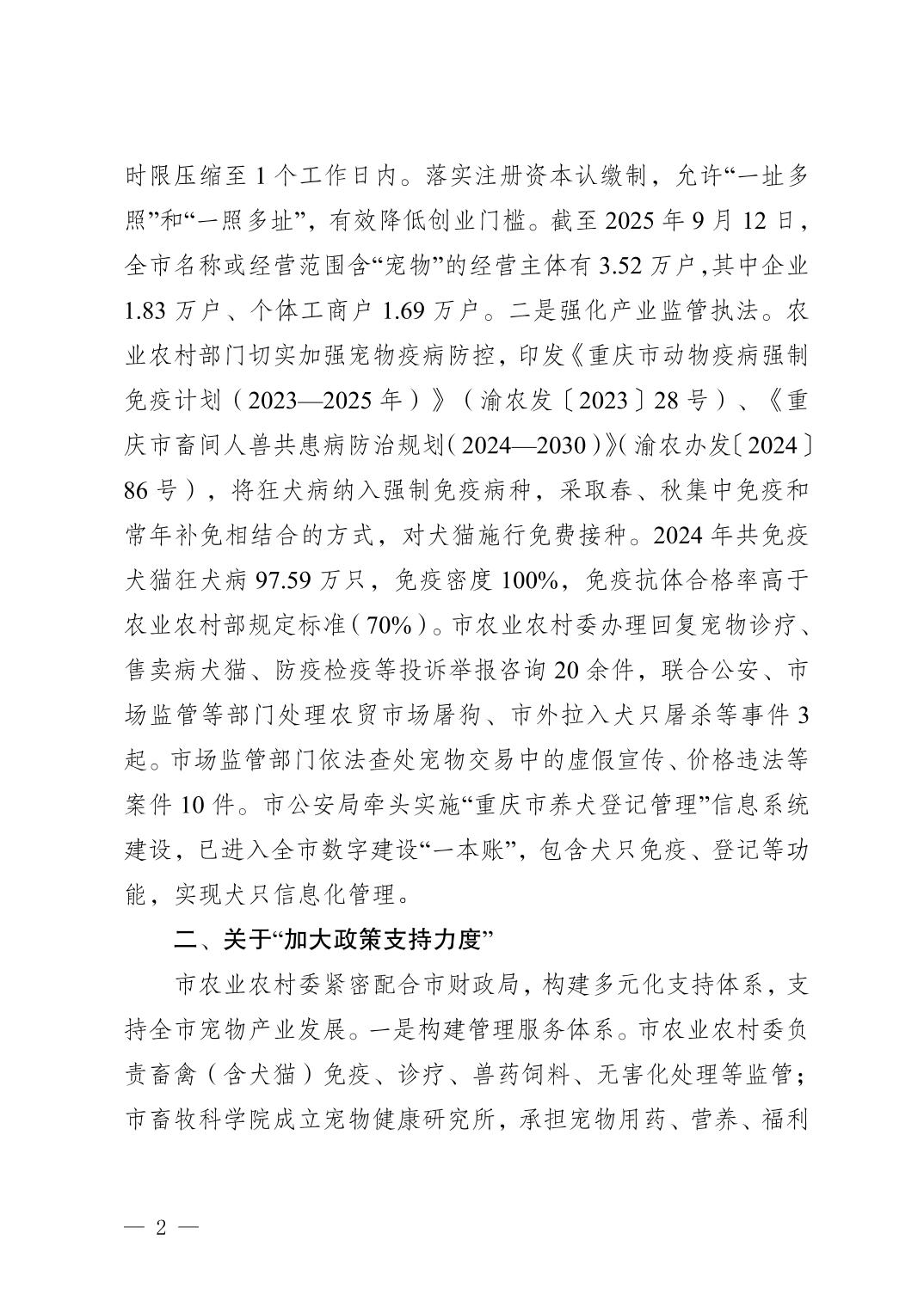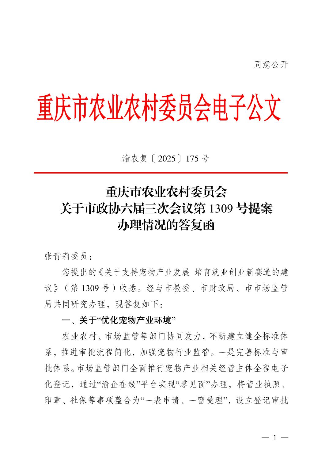 重庆市农业农村委员会关于市政协六届三次会议第1309 号提案办理情况的答复函