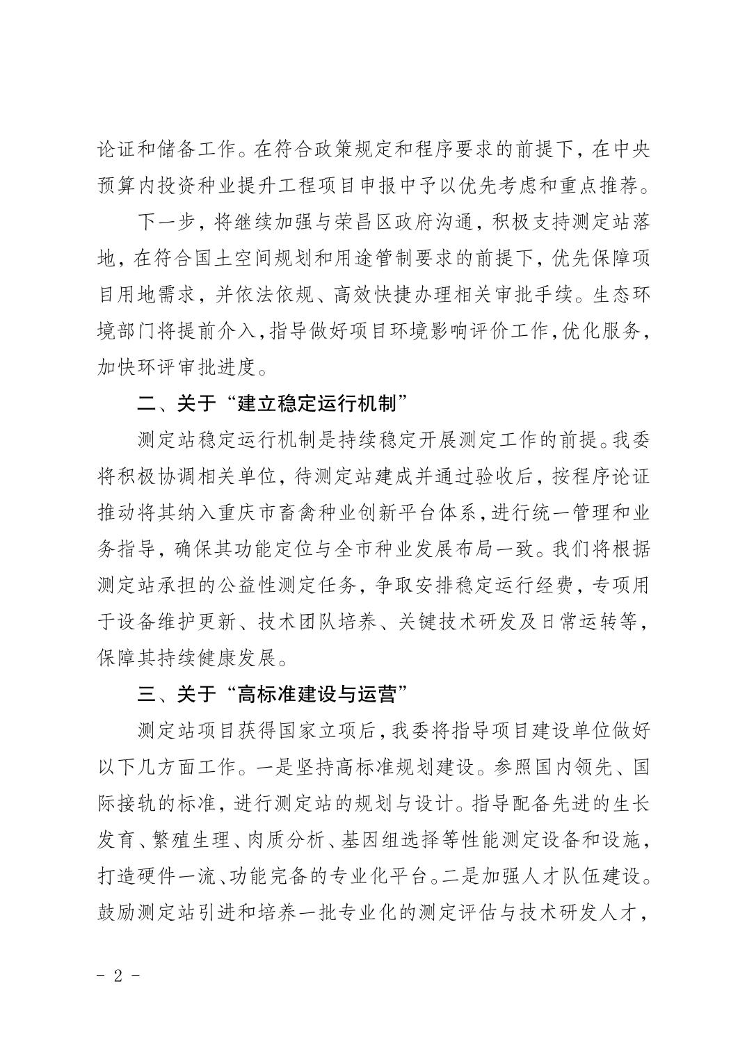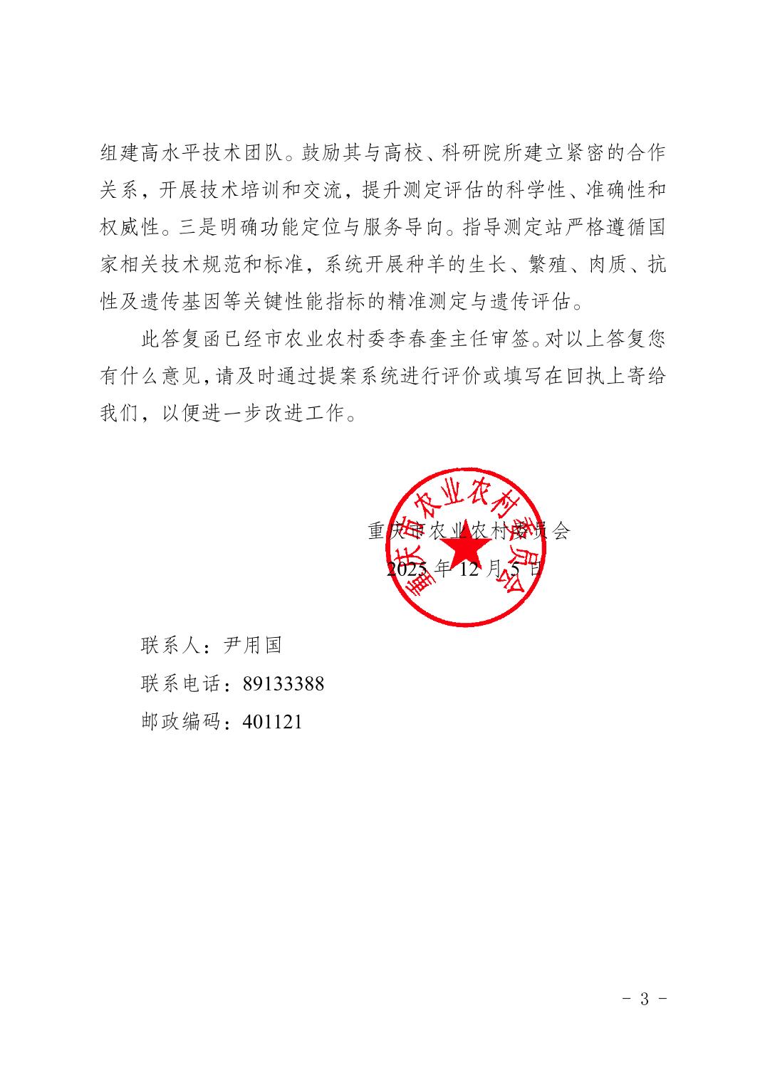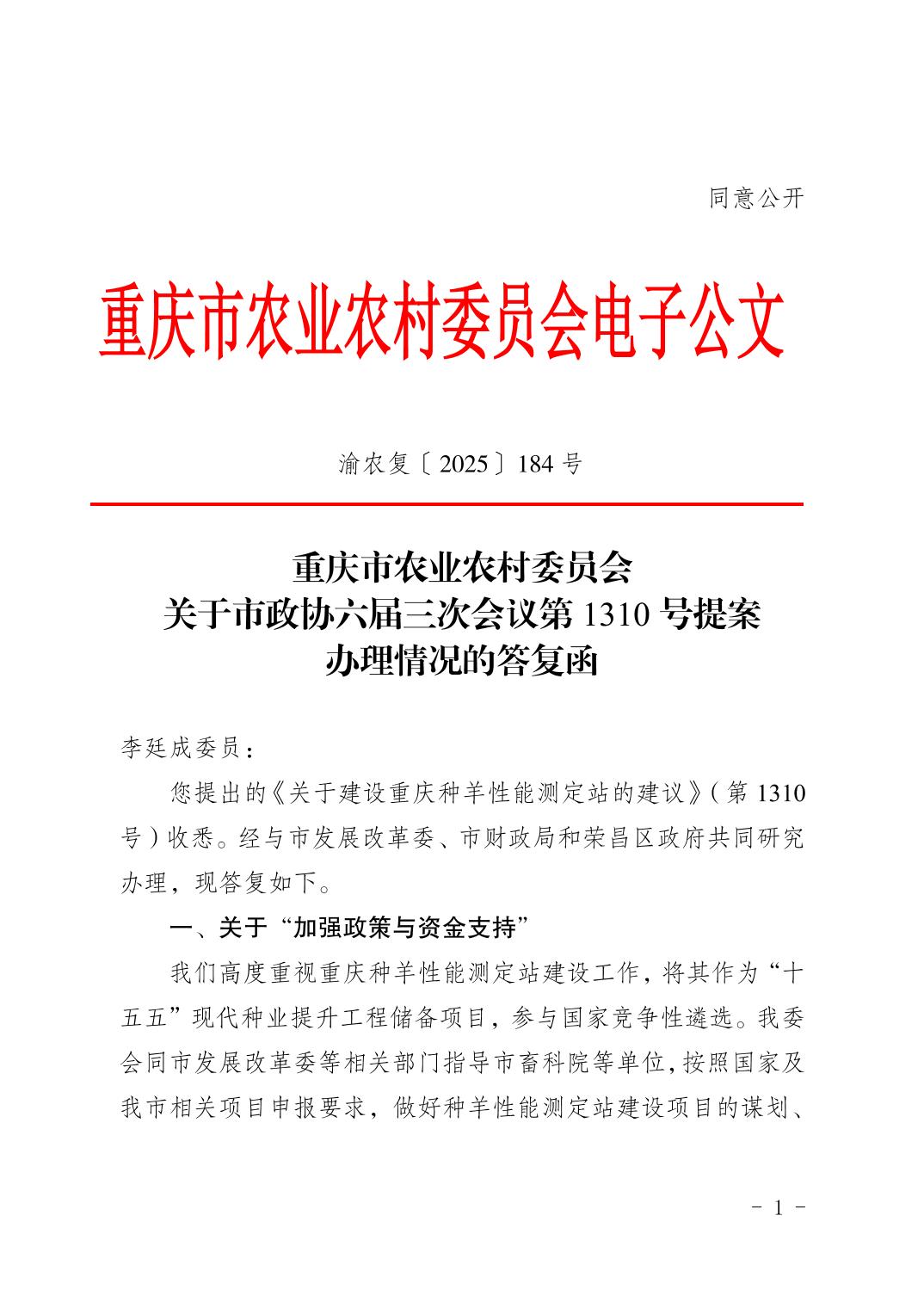 重庆市农业农村委员会关于市政协六届三次会议第1310 号提案办理情况的答复函