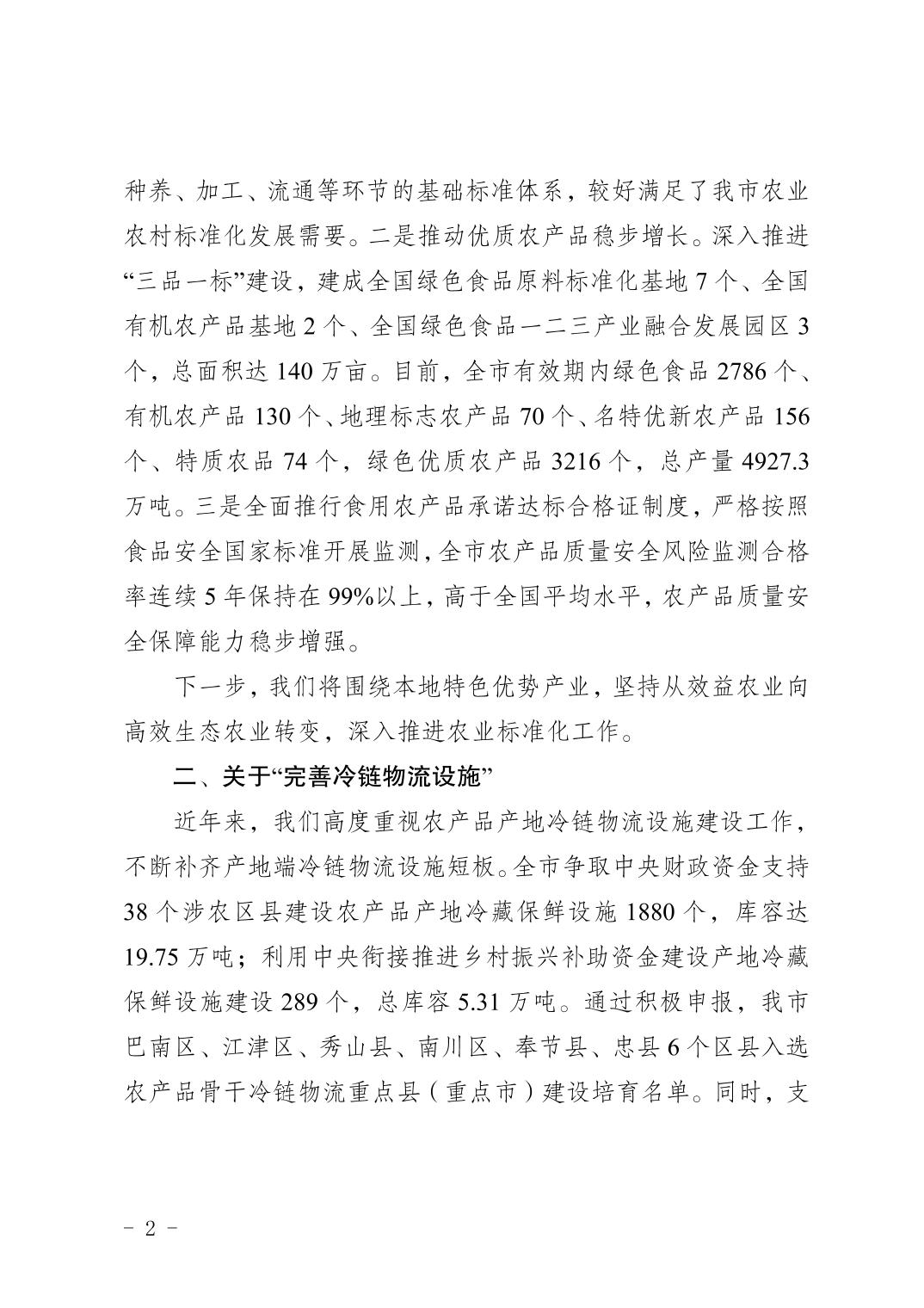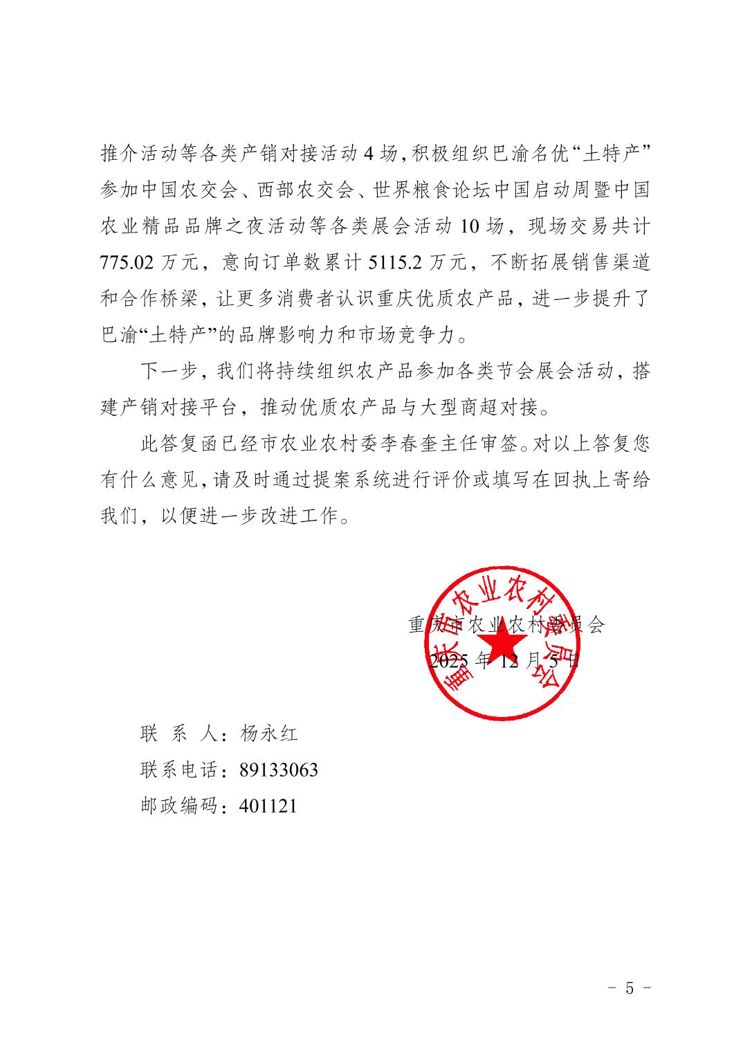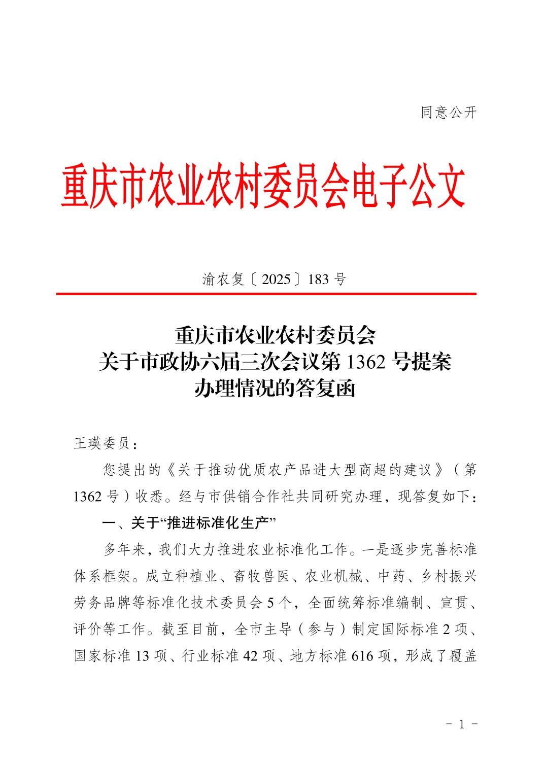 重庆市农业农村委员会关于市政协六届三次会议第1362 号提案办理情况的答复函