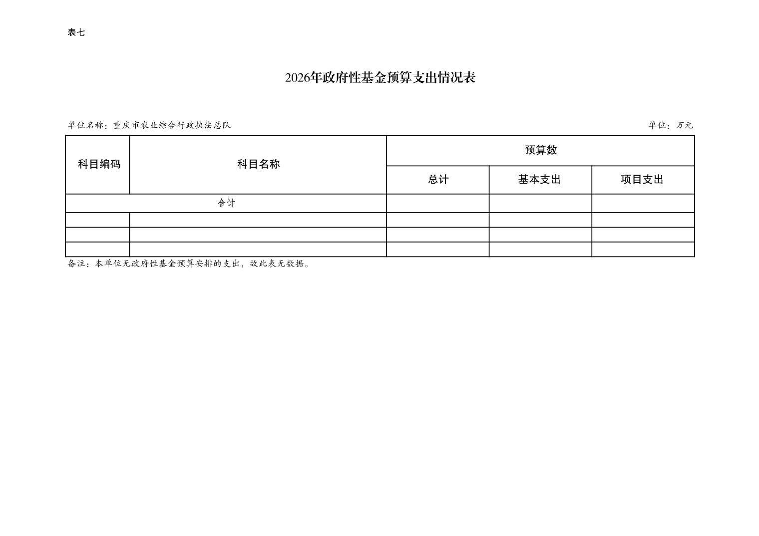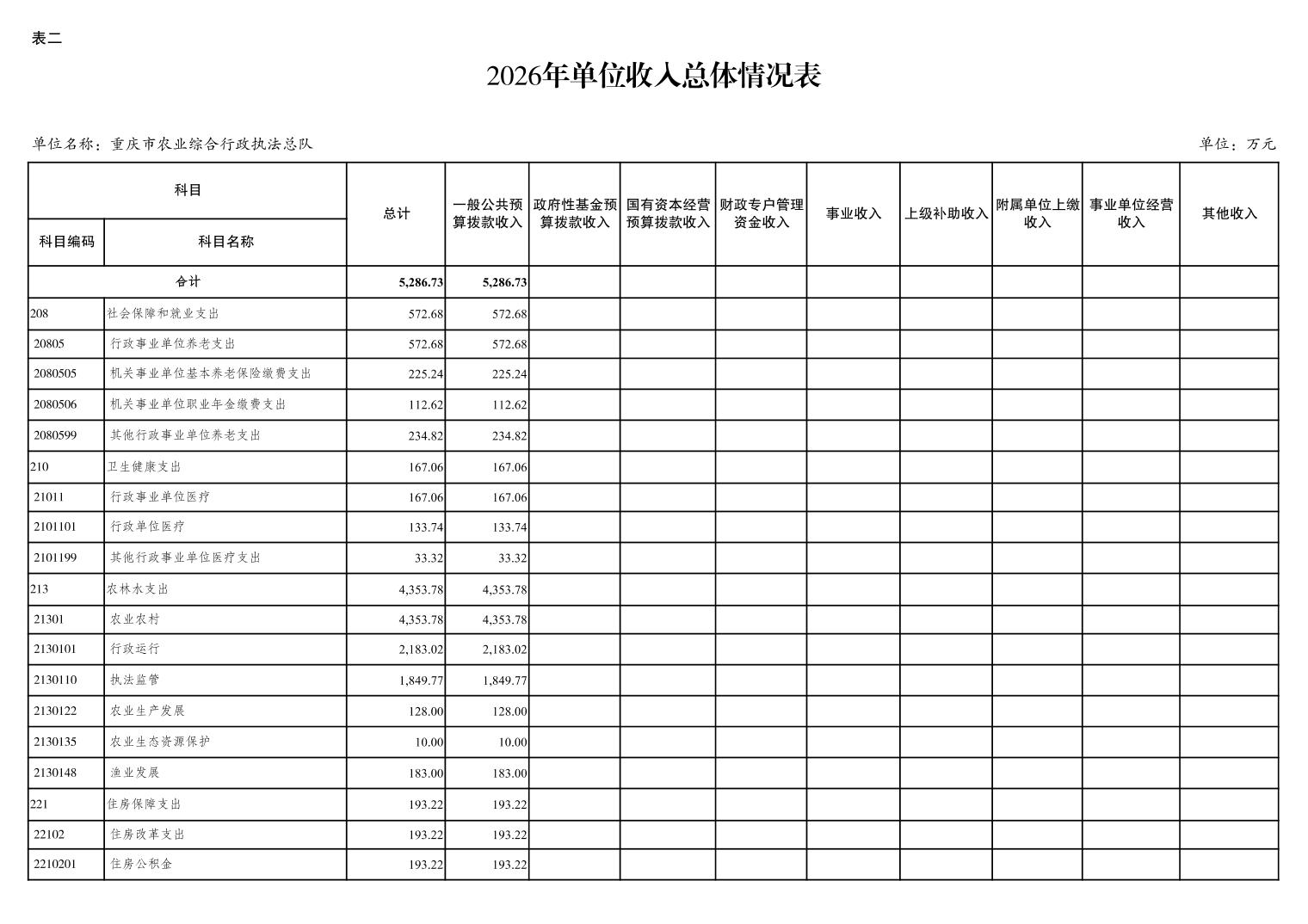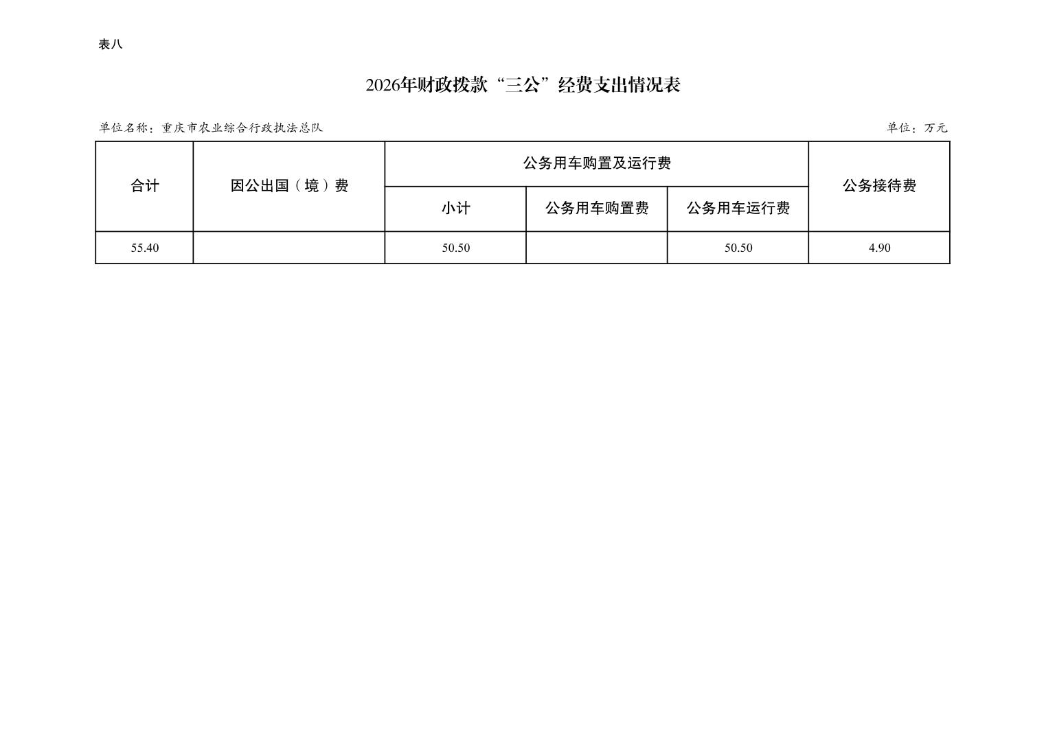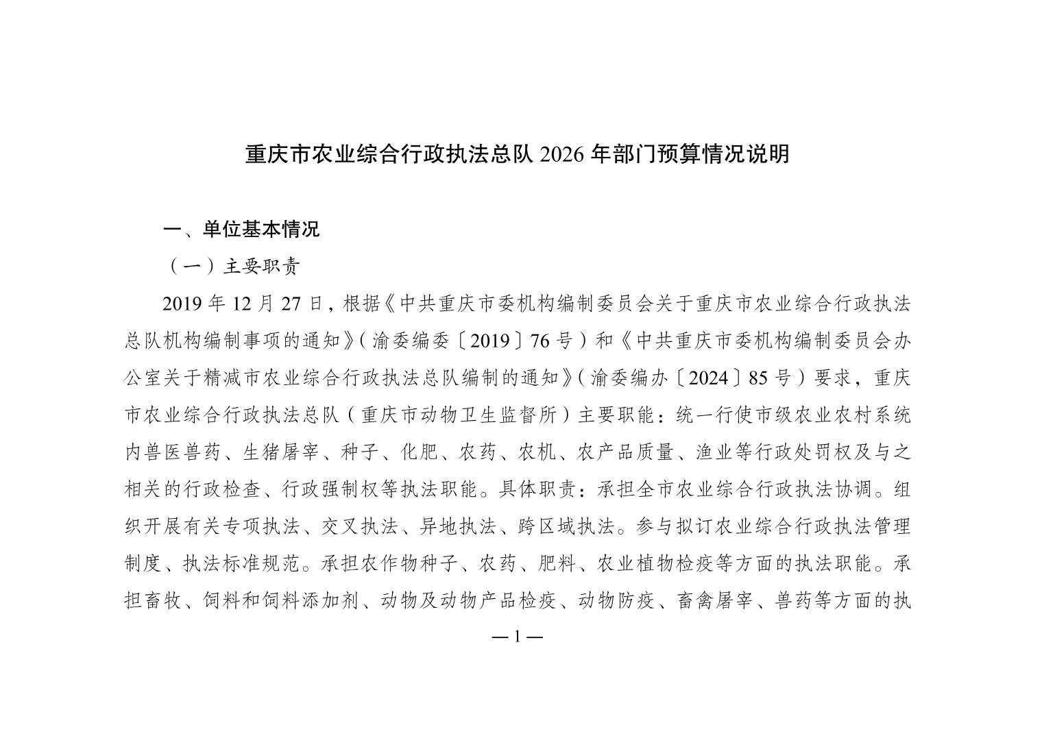 重庆市农业综合行政执法总队2026年单位预算情况说明