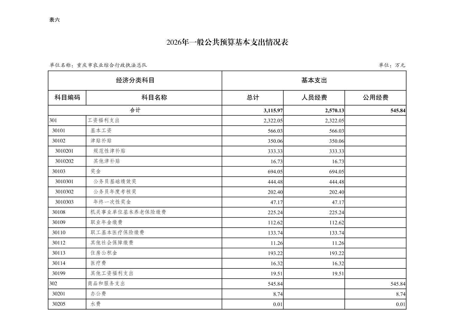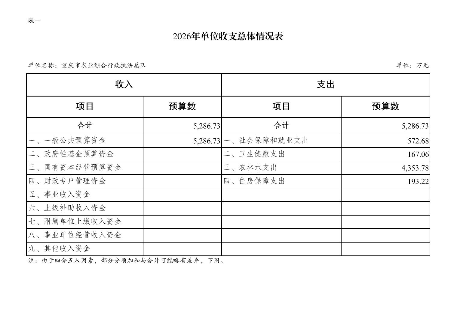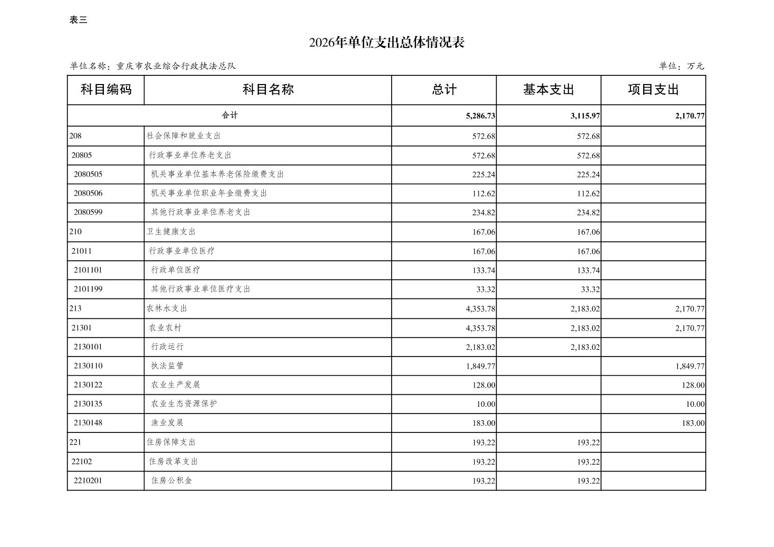 重庆市农业综合行政执法总队2026年单位预算情况说明