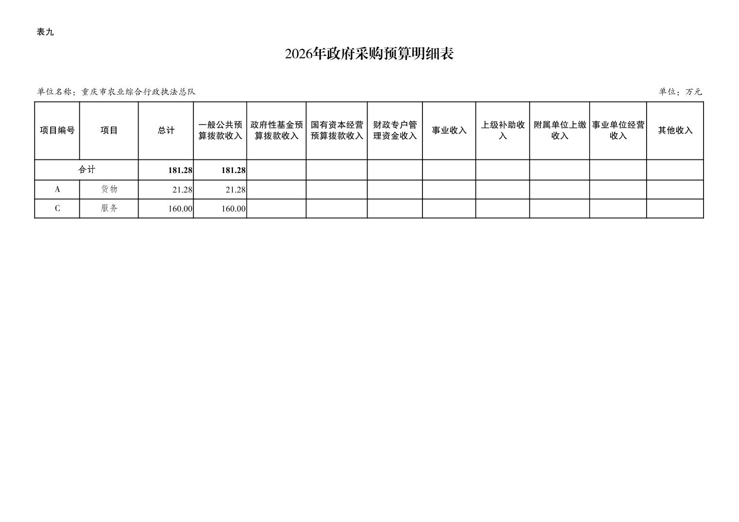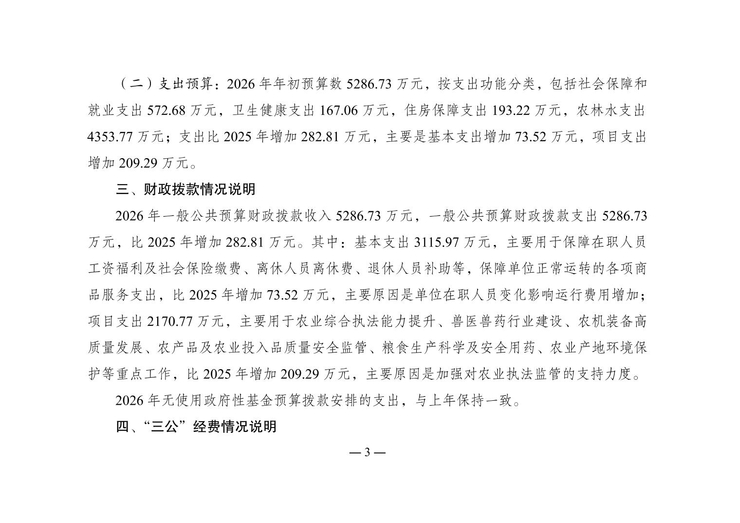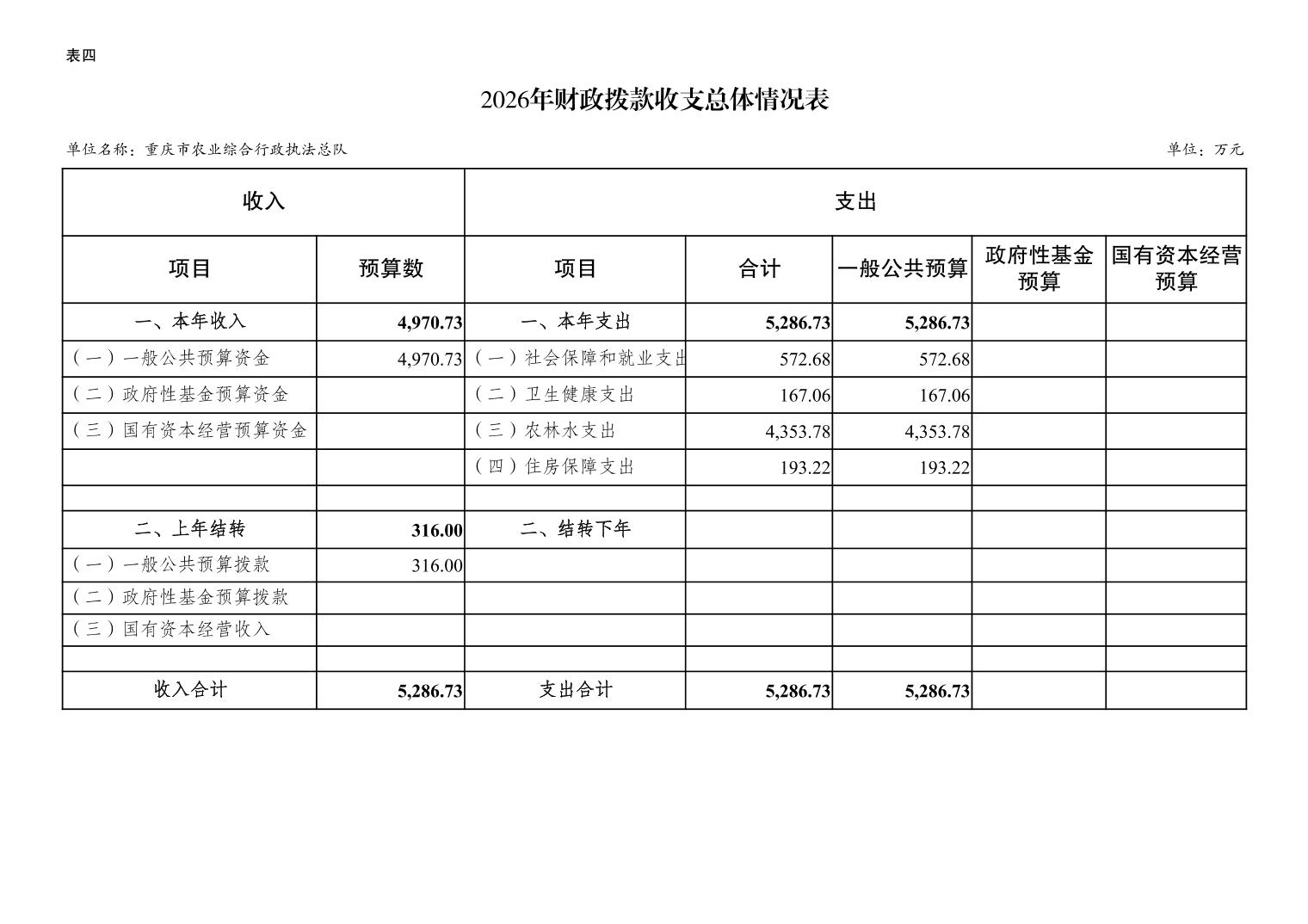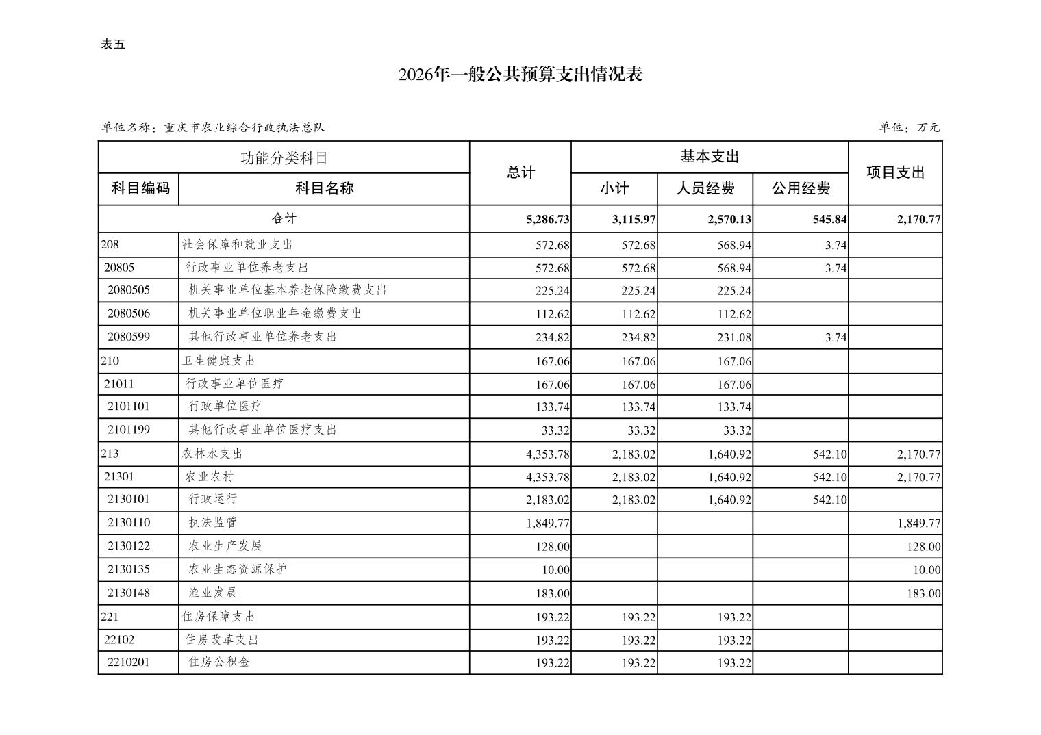 重庆市农业综合行政执法总队2026年单位预算情况说明