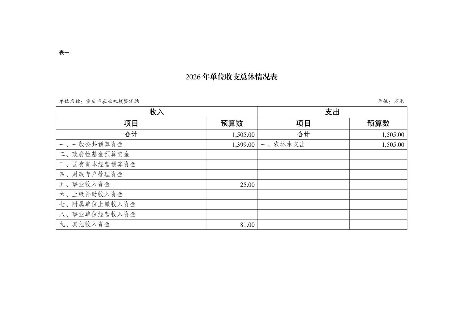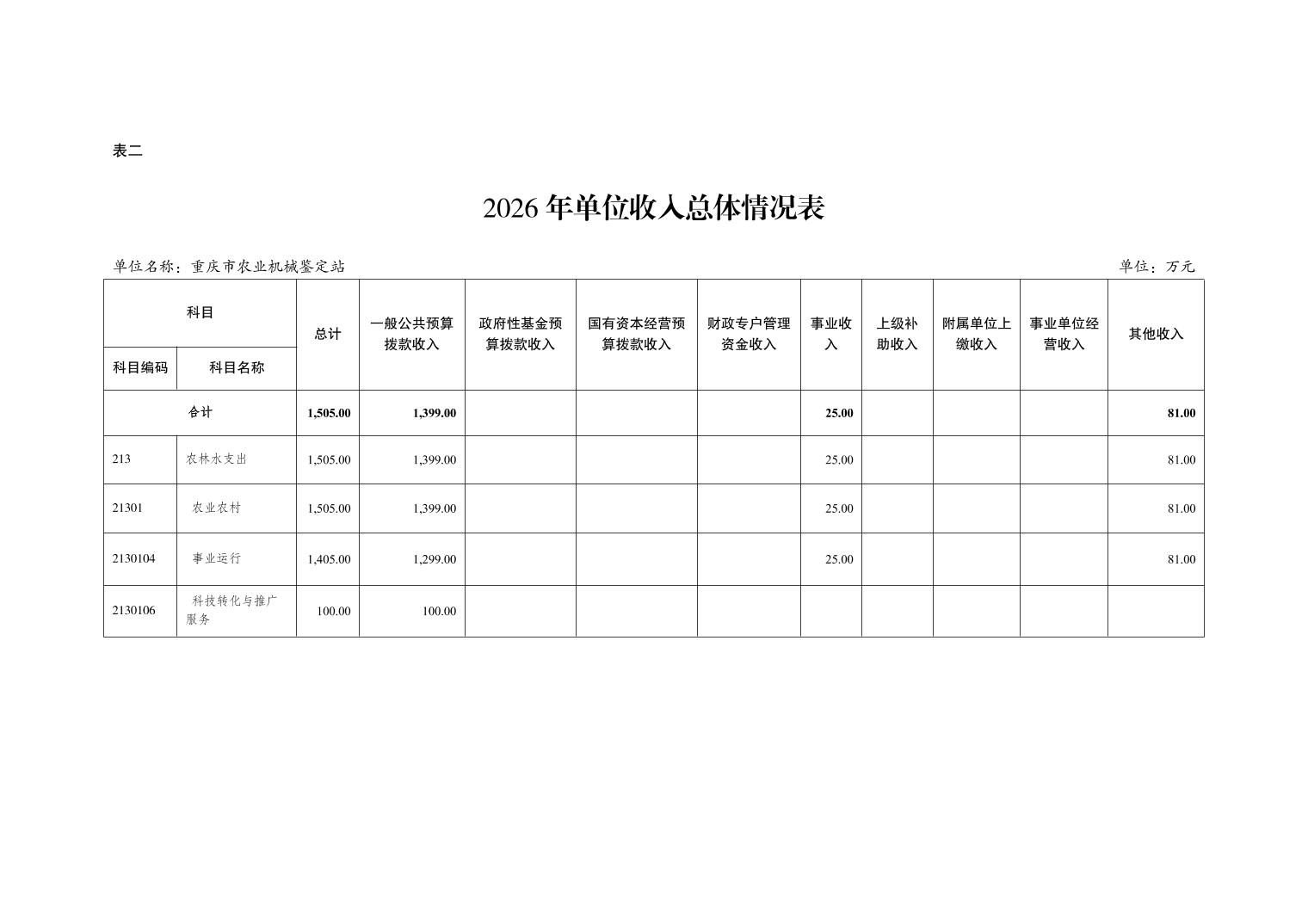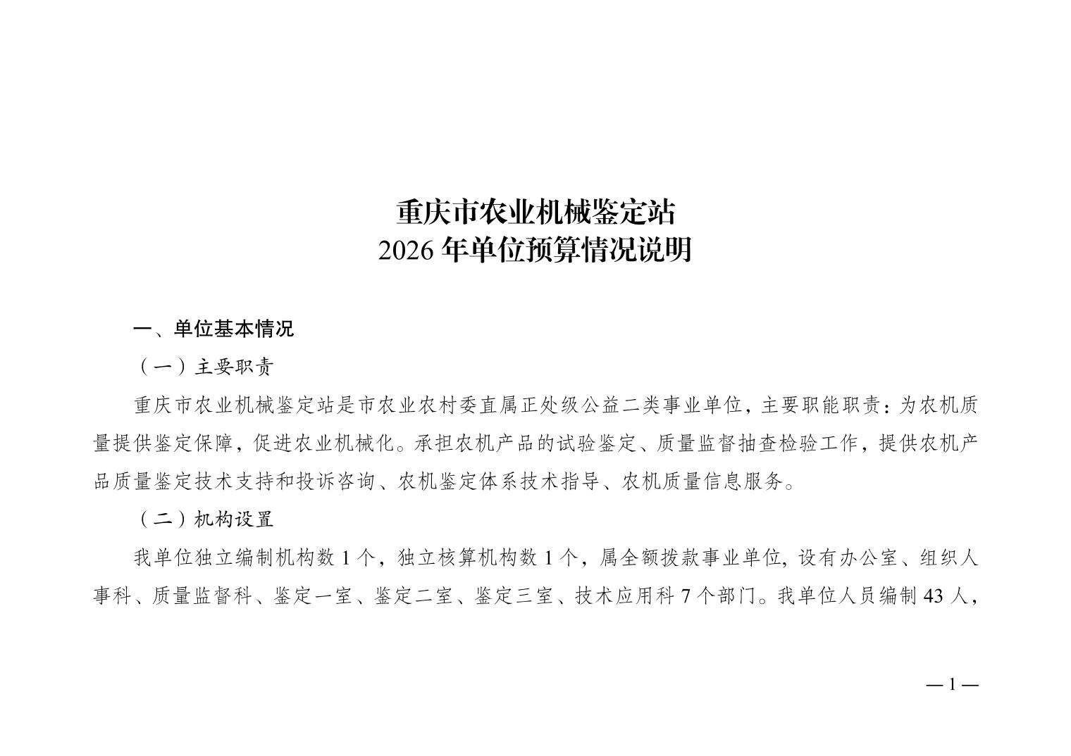 重庆市农业机械鉴定站2026年单位预算情况说明
