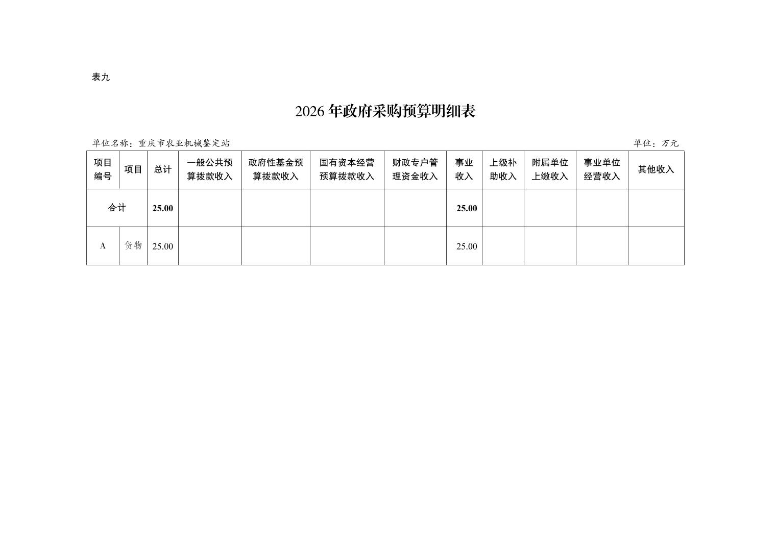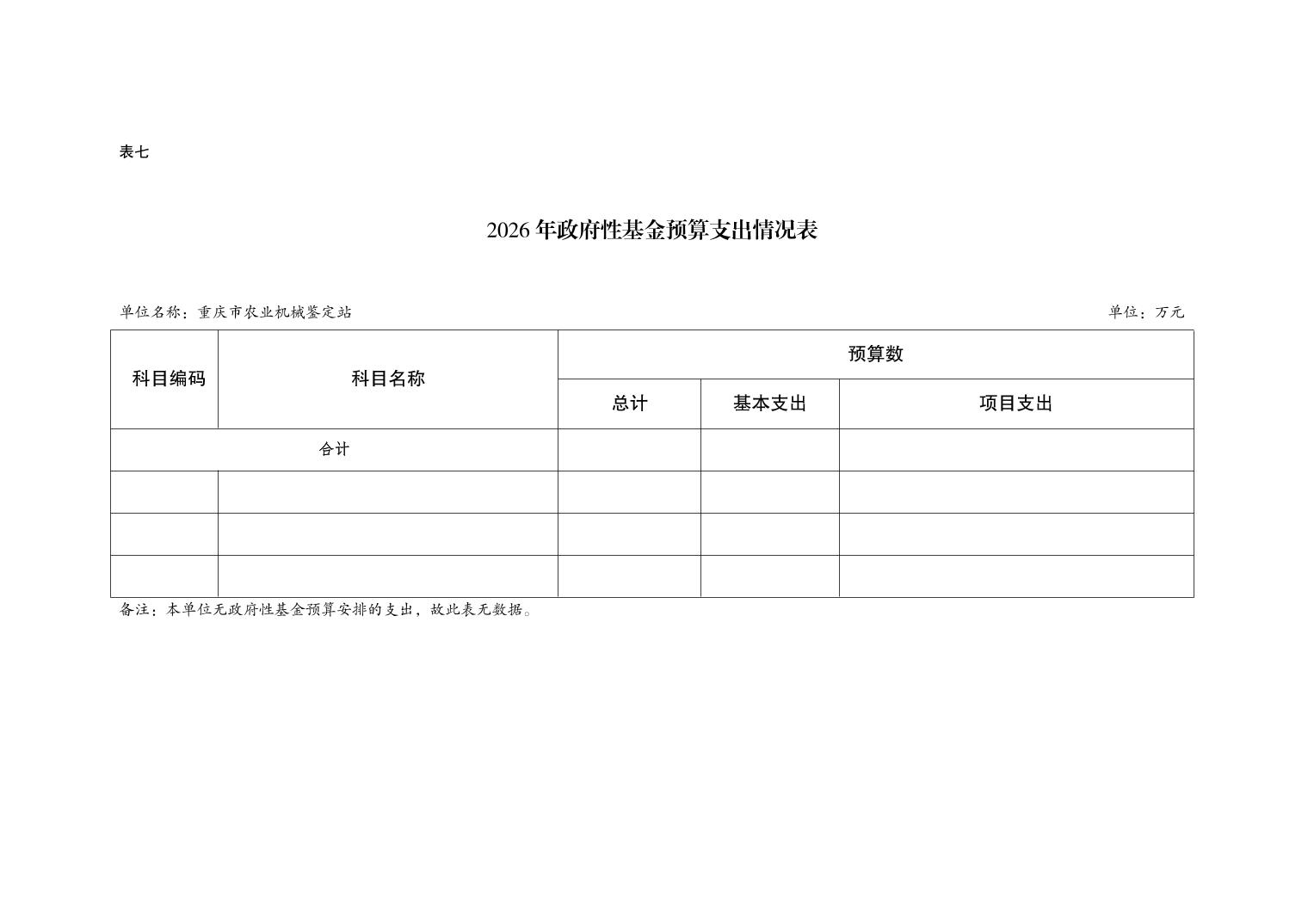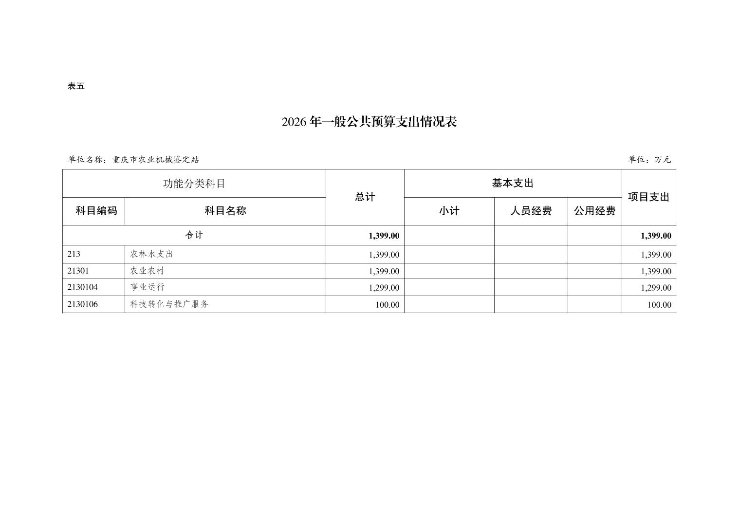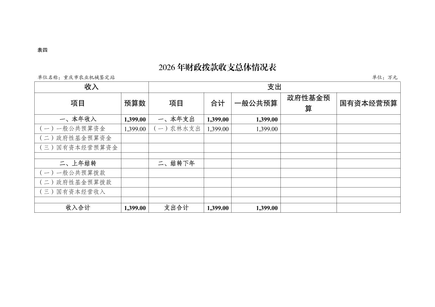 重庆市农业机械鉴定站2026年单位预算情况说明