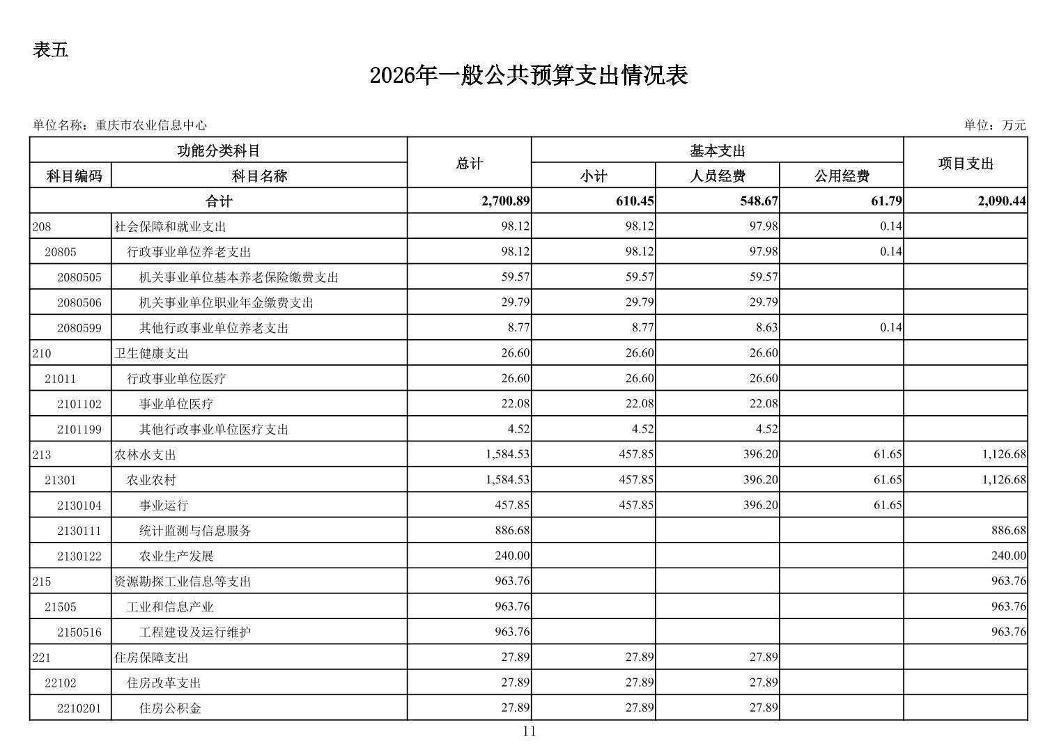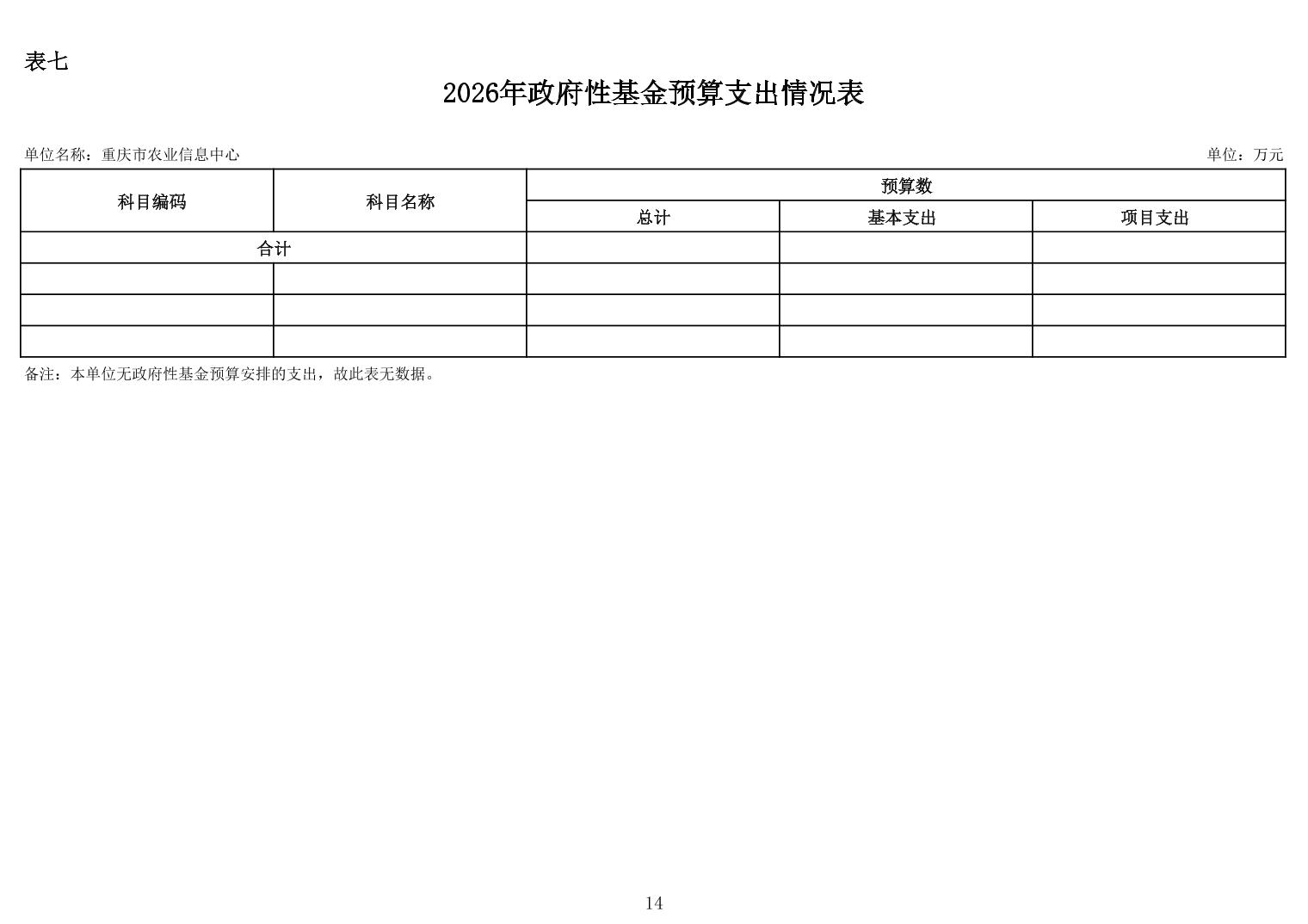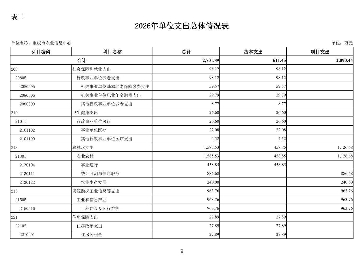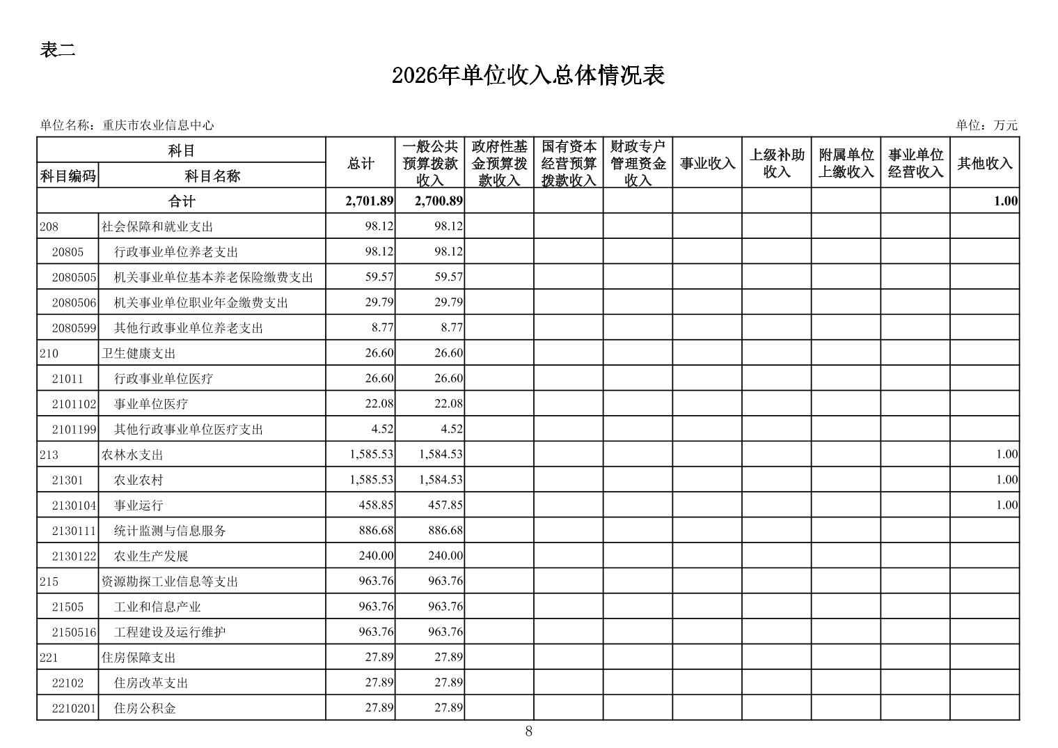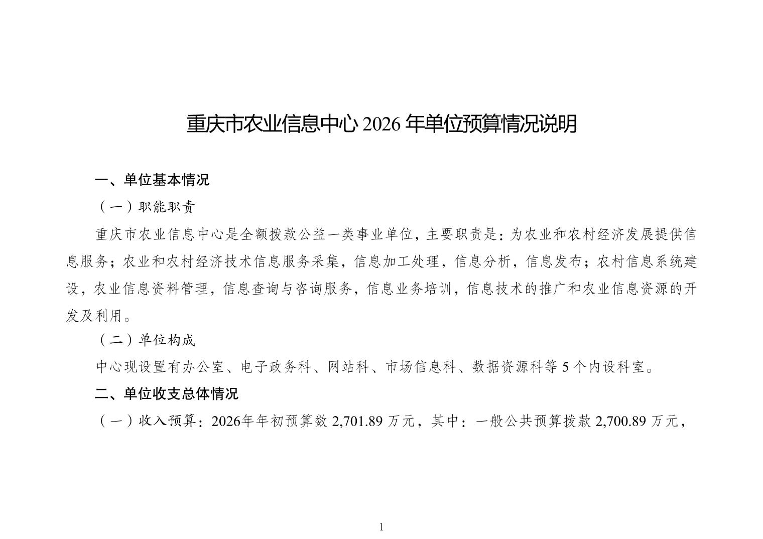 重庆市农业信息中心2026年单位预算情况说明