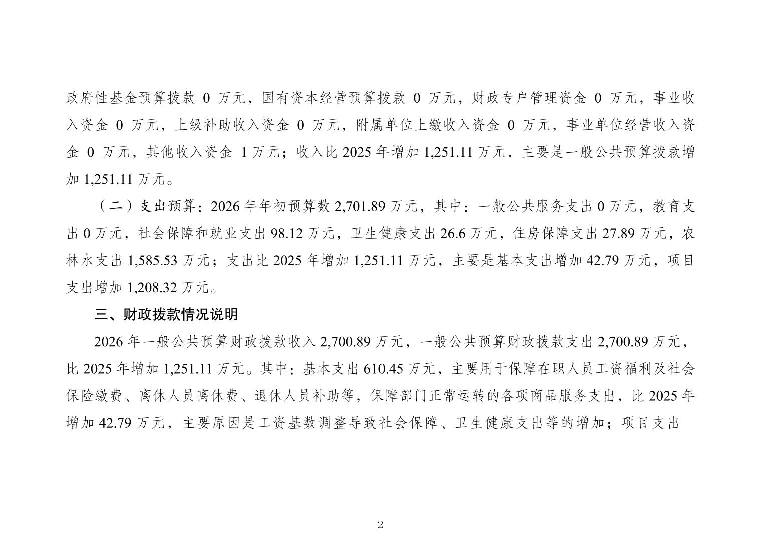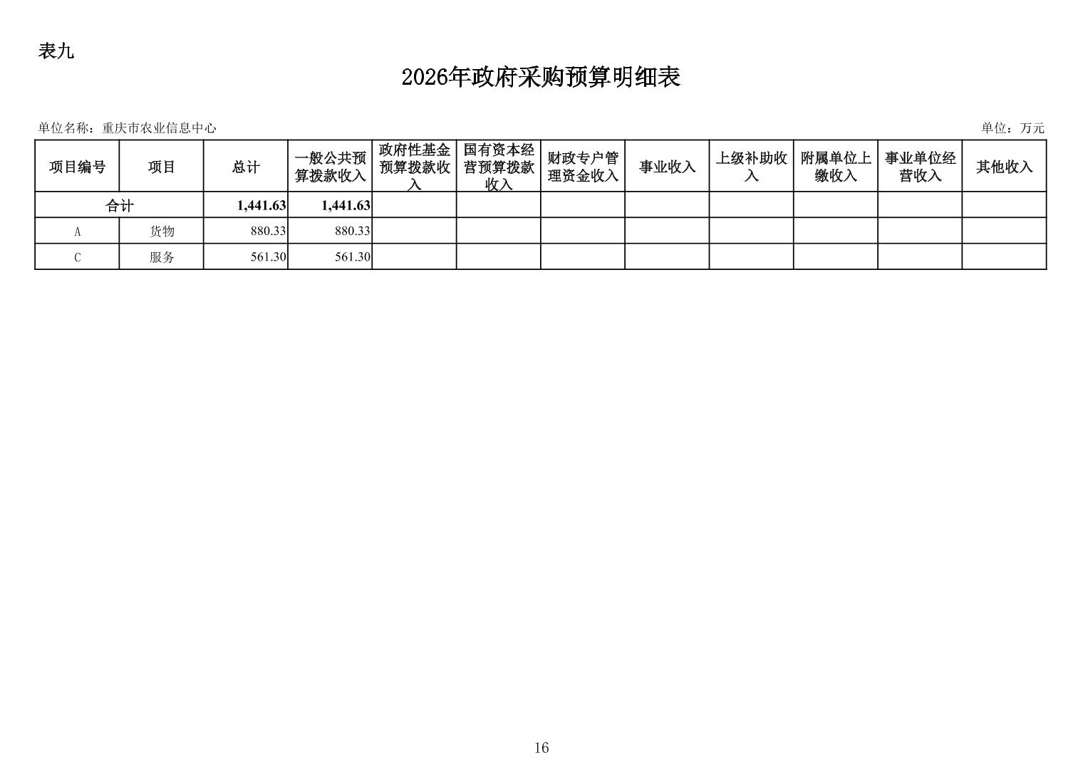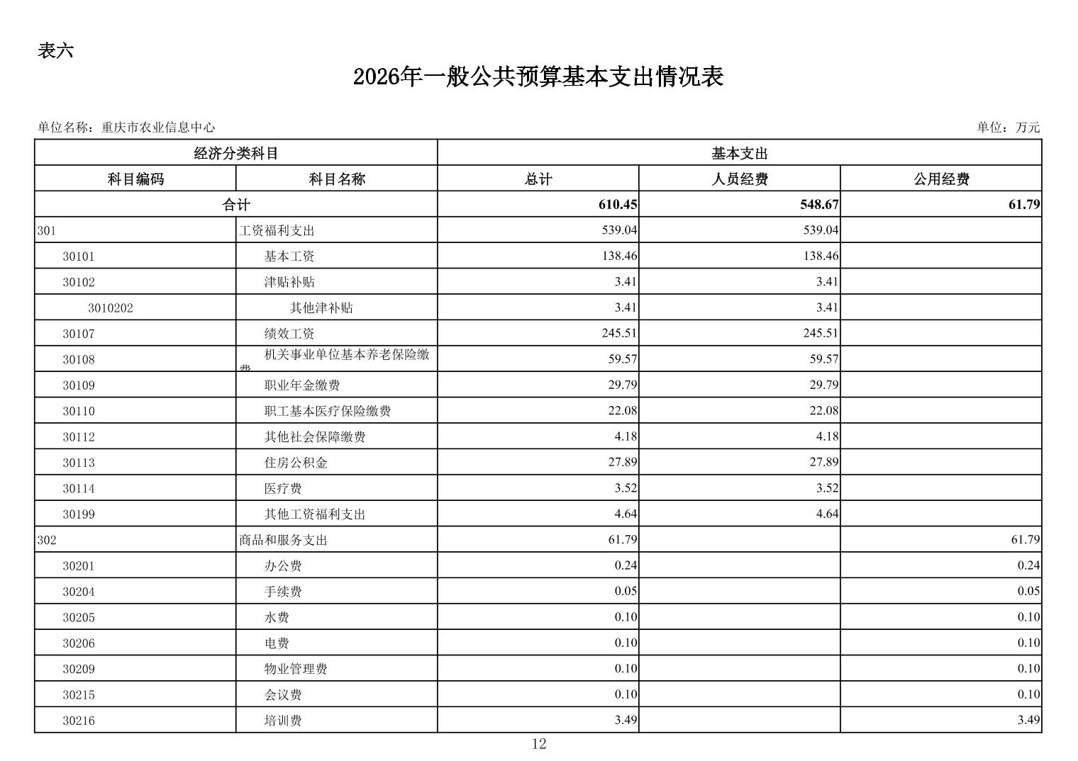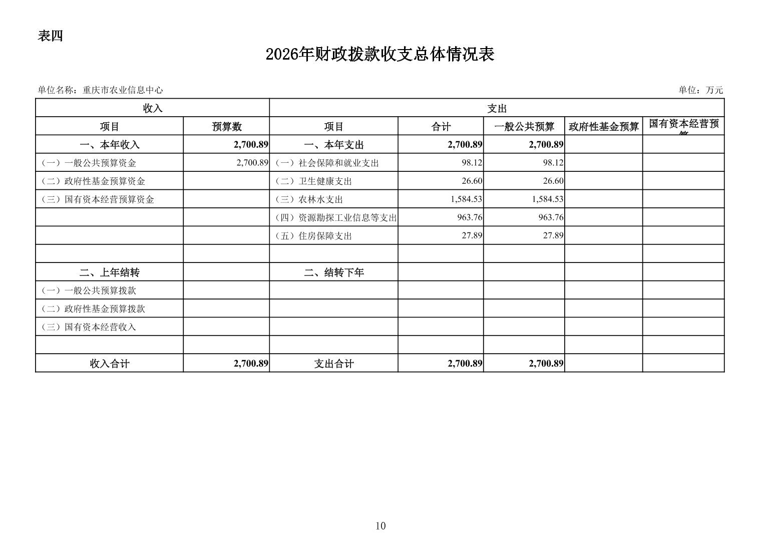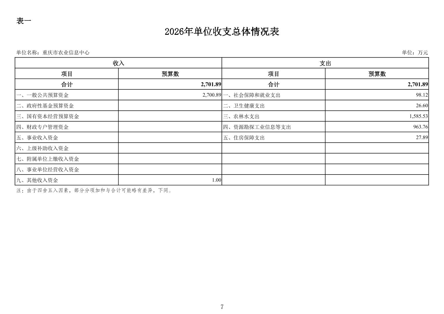 重庆市农业信息中心2026年单位预算情况说明