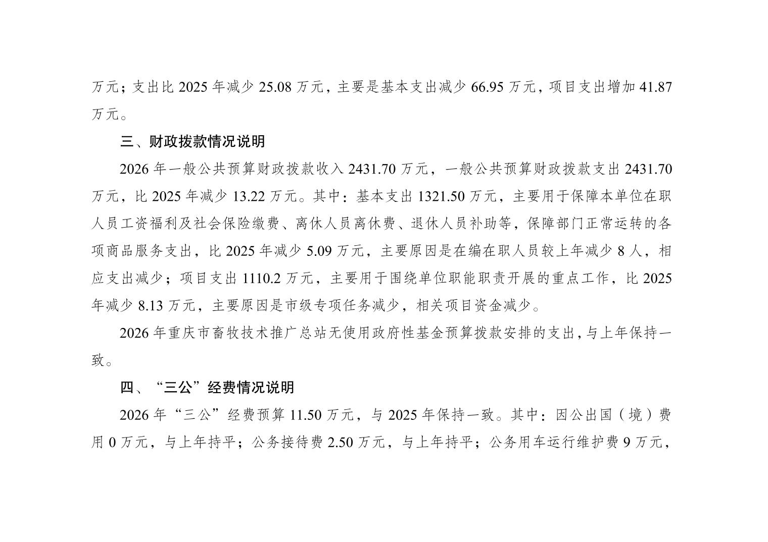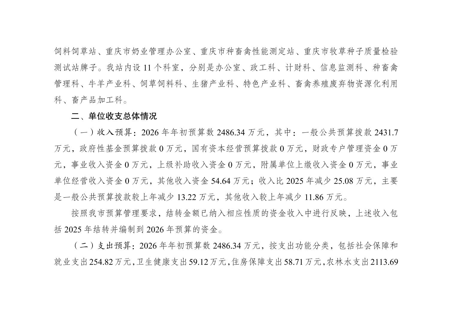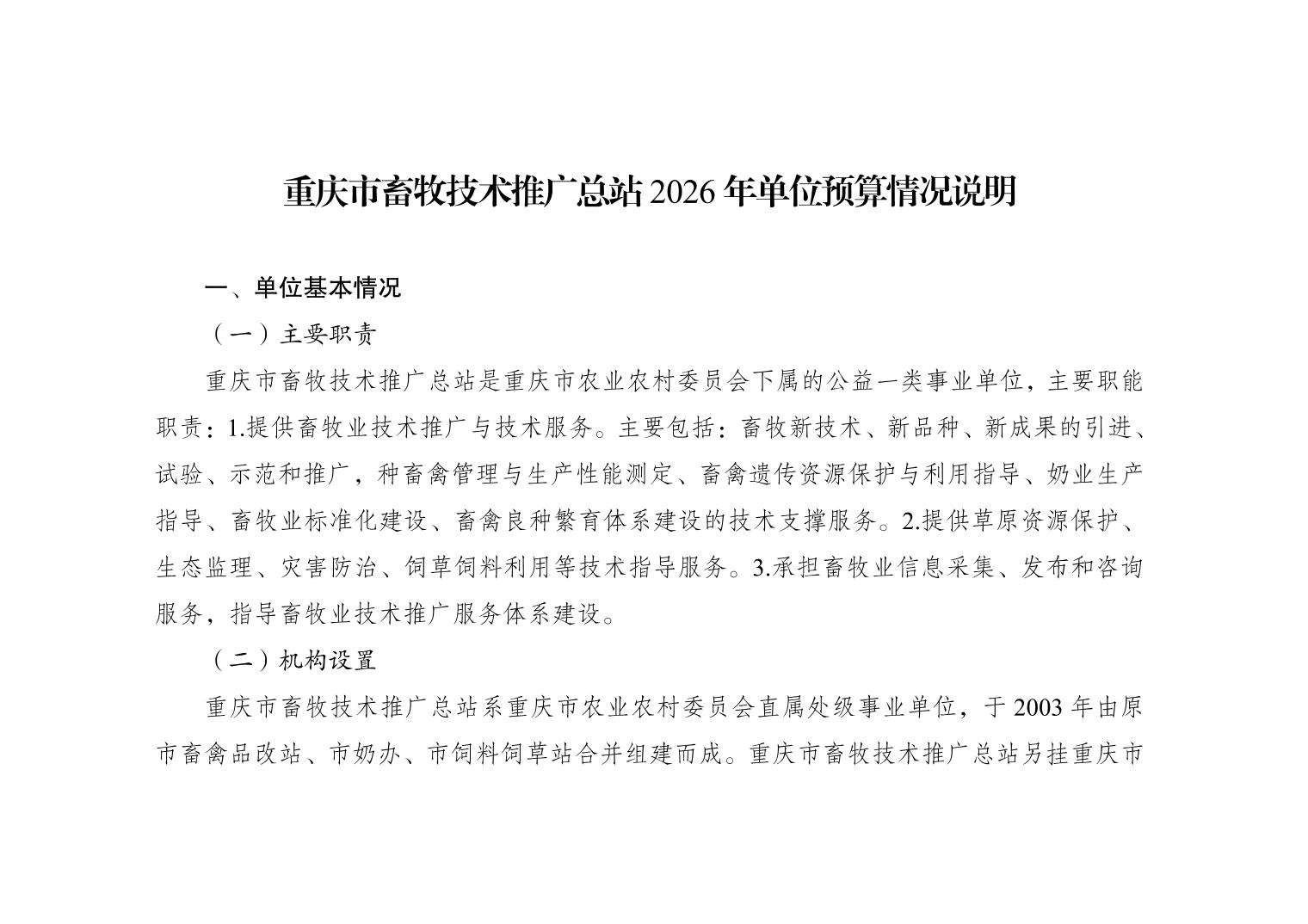 重庆市畜牧技术推广总站2026年单位预算情况说明
