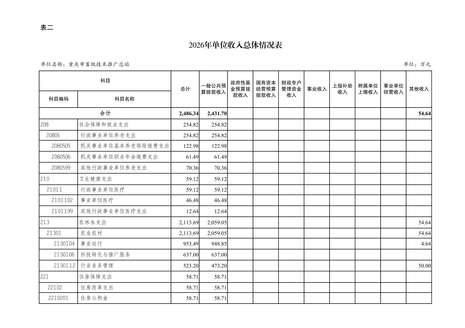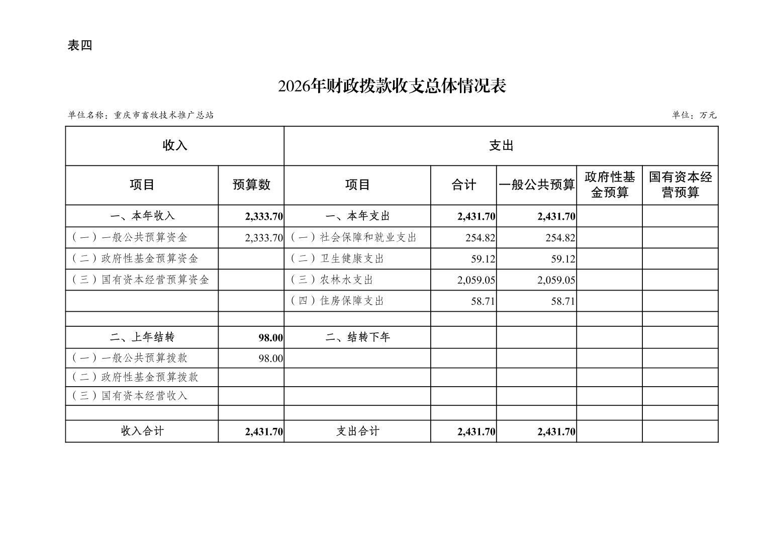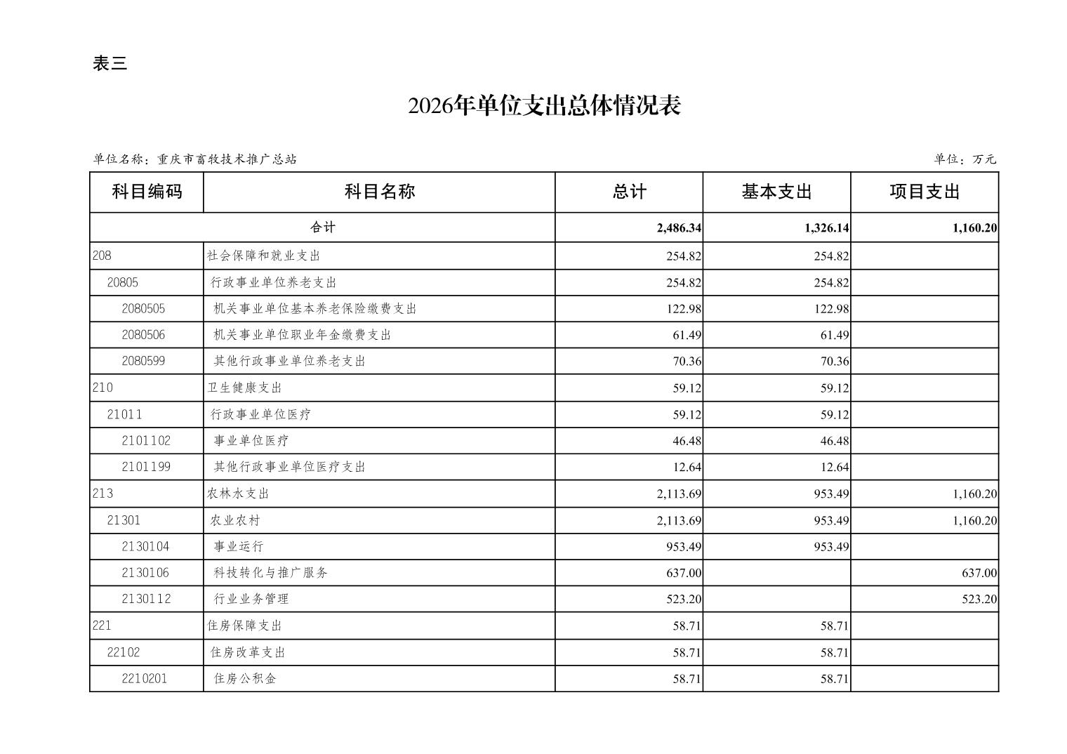 重庆市畜牧技术推广总站2026年单位预算情况说明