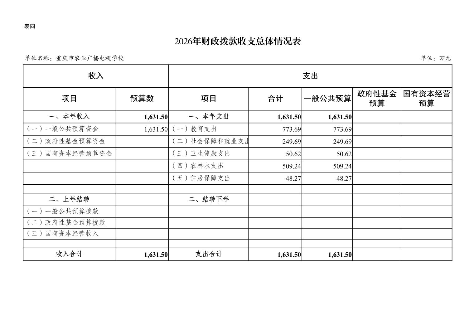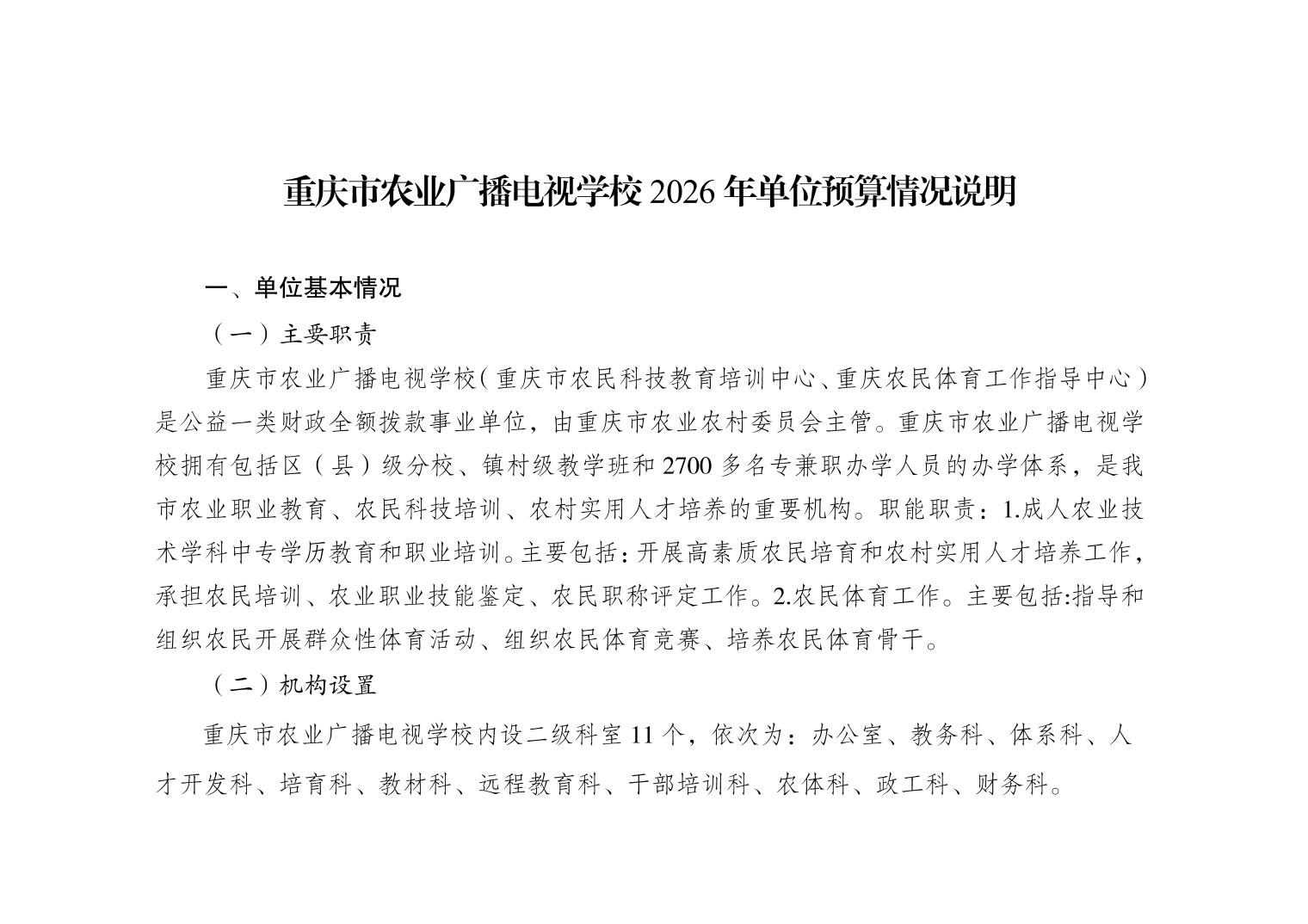 重庆市农业广播电视学校2026年单位预算情况说明