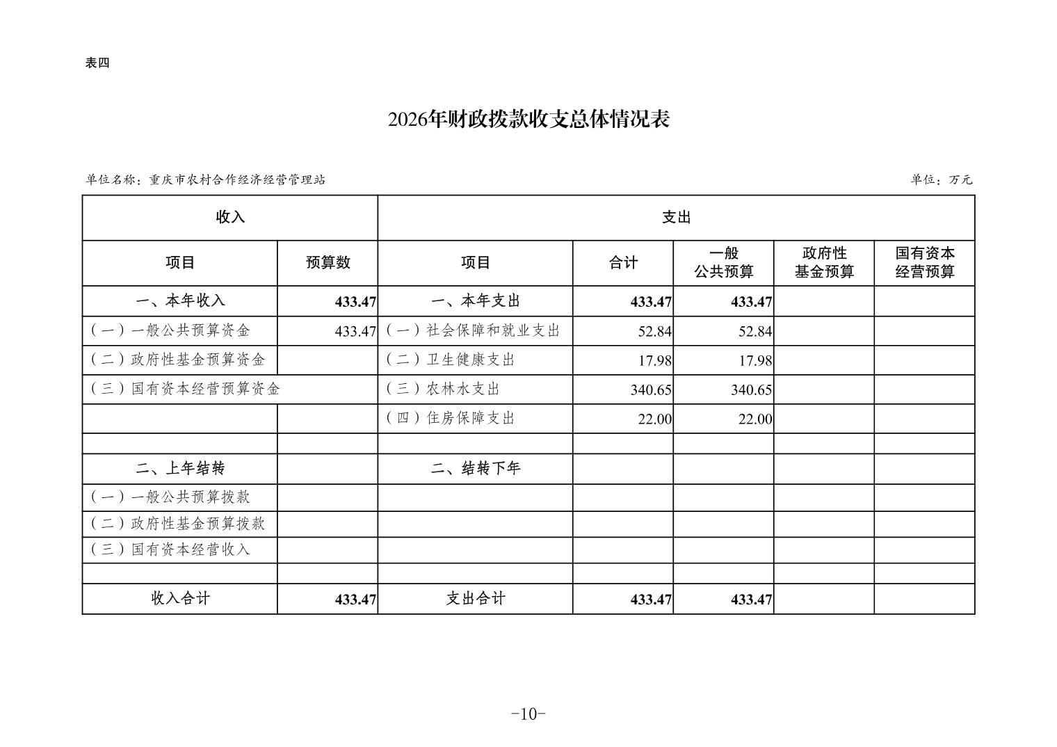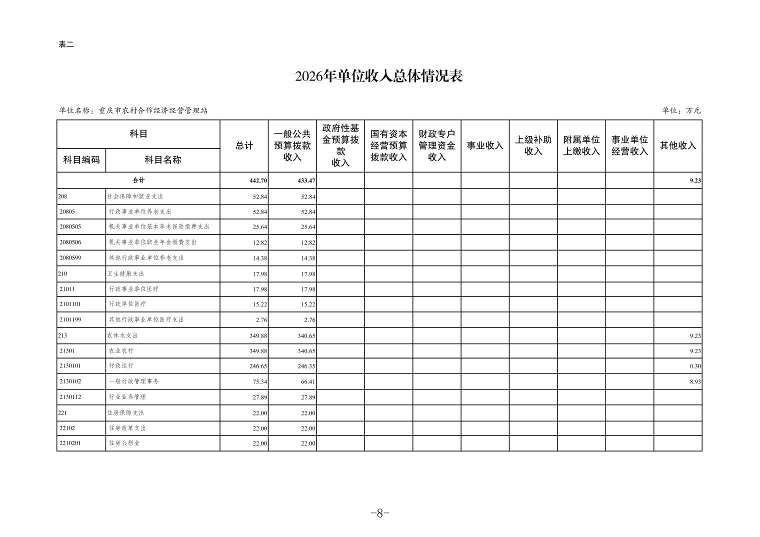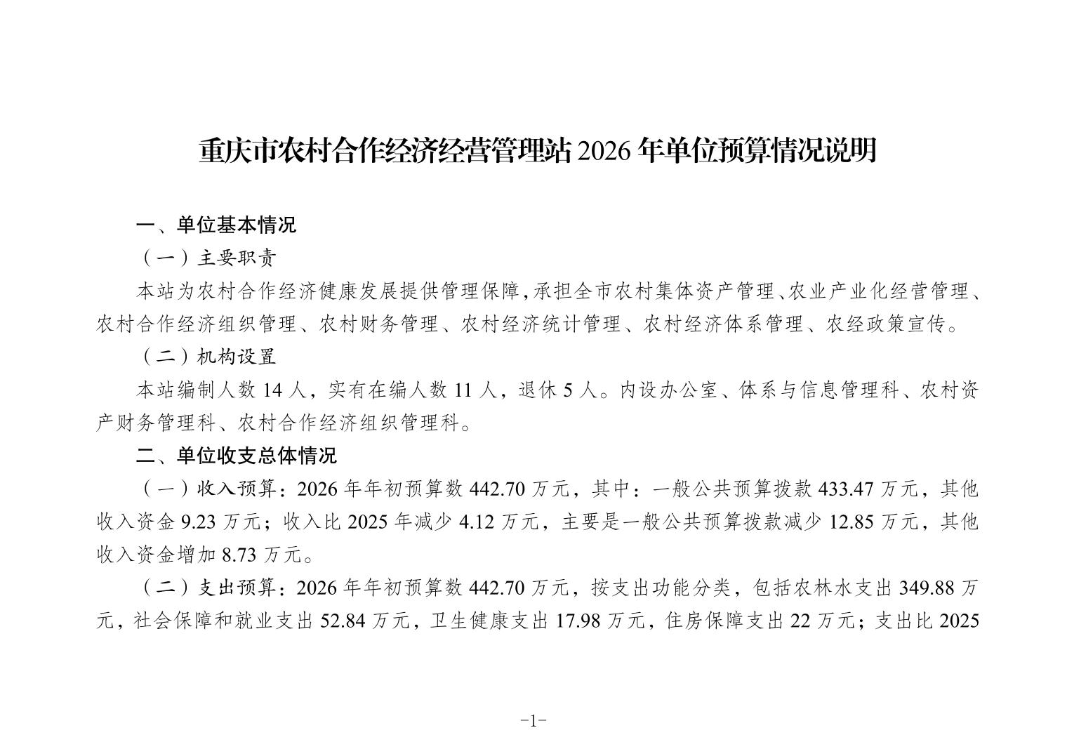 重庆市农村合作经济经营管理站2026年单位预算情况说明