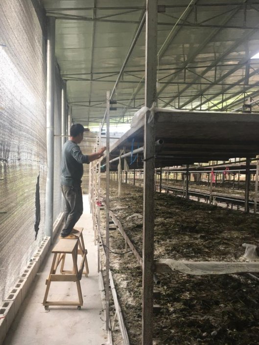 在共育工厂度过二龄期后,小蚕“落户”蚕棚。在李子村的一个标准化养蚕车间内,近两米高的蚕架被隔成三层,每一层形成一个蚕台,等蚕到了五龄期,密密麻麻的大蚕在上面啃食桑叶,扩大蚕台面积迫在眉睫。