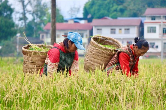 ▲10月29日,聚奎镇顺安村,村民在收割再生稻。