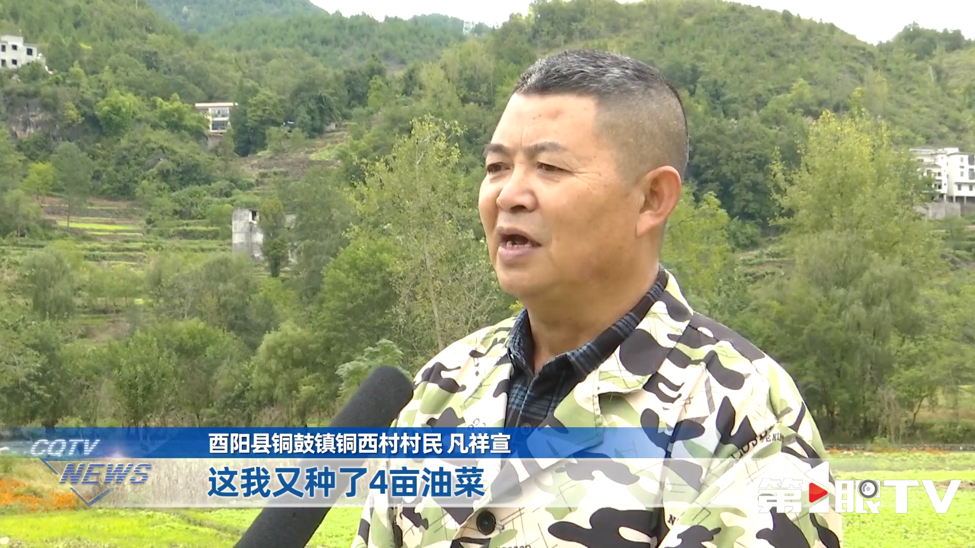 酉阳县铜鼓镇铜西村村民凡祥宣:“这我又种了4亩油菜,还是庆油3号,加上技术人员的指导,来年预计每亩增加产量5公斤左右。”