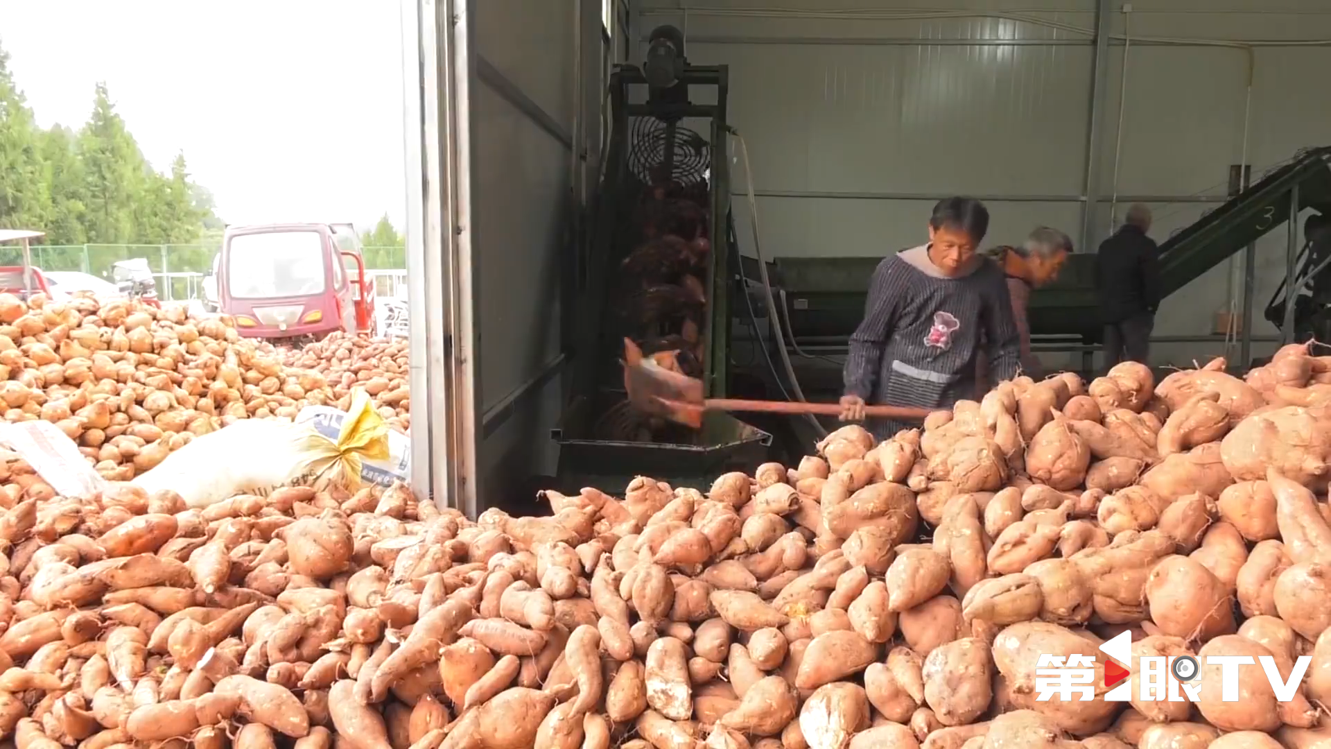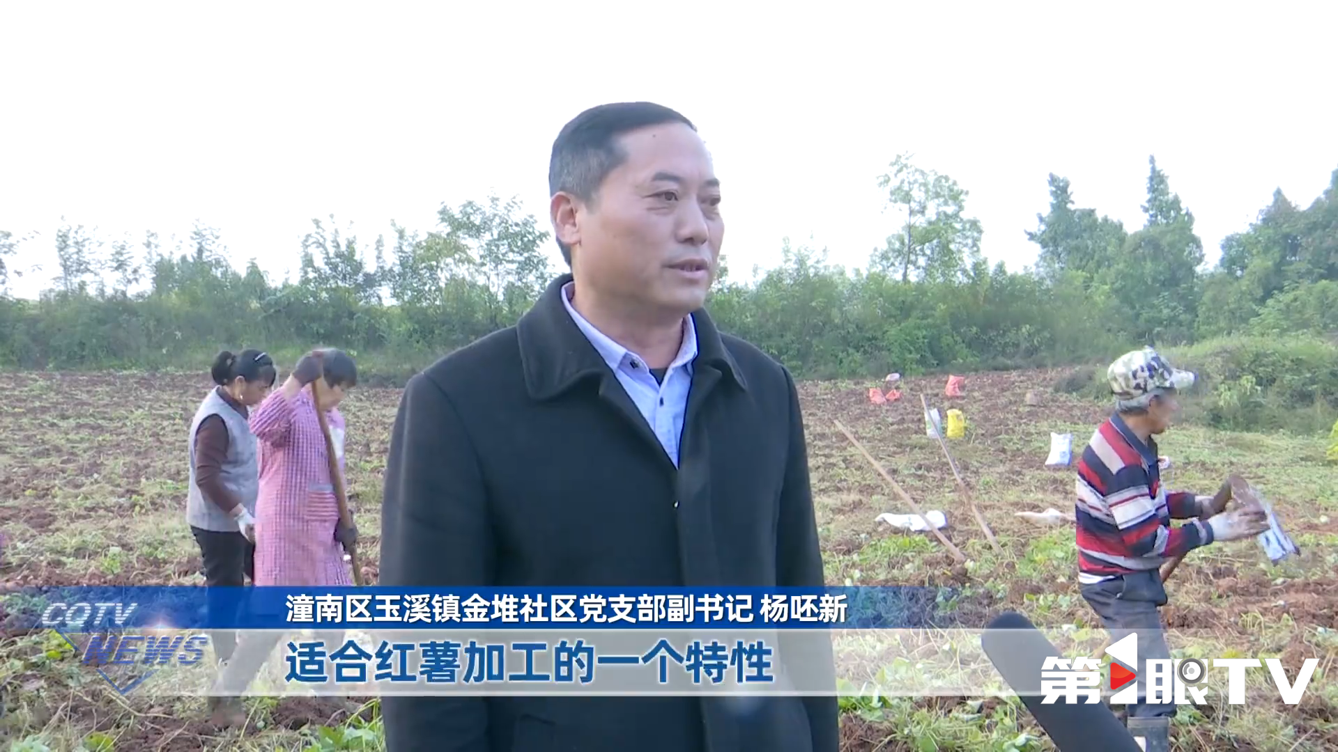 潼南区玉溪镇金堆社区党支部副书记杨呸新:“粉率高、有韧性, 适合红薯加工的一个特性, 为我们这个集体经济预计带来收益在50万元。”