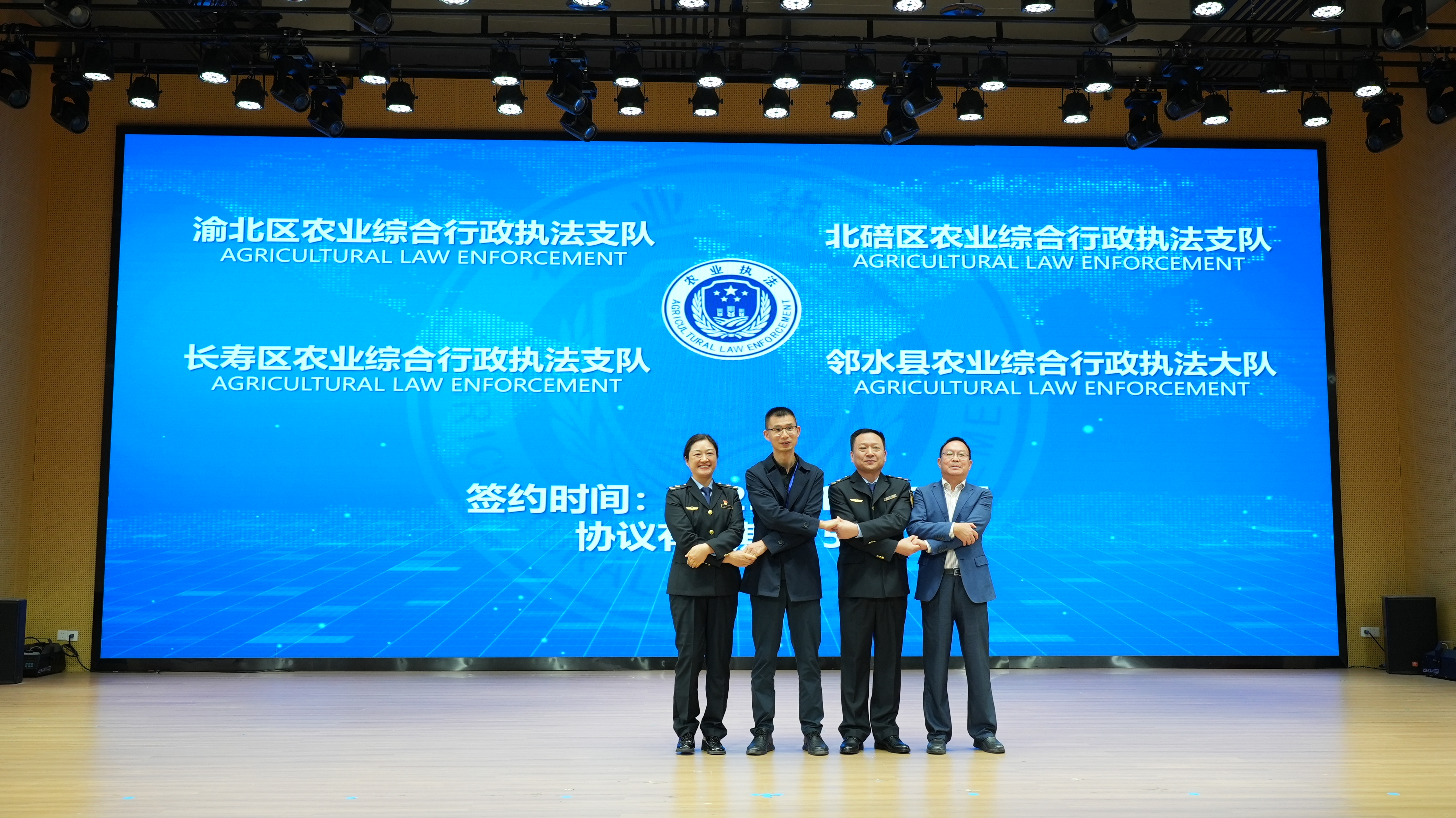 ▲重庆市渝北区、北碚区、长寿区与四川省邻水县签订跨区域农业综合行政执法协作协议。记者 赵伟平 摄