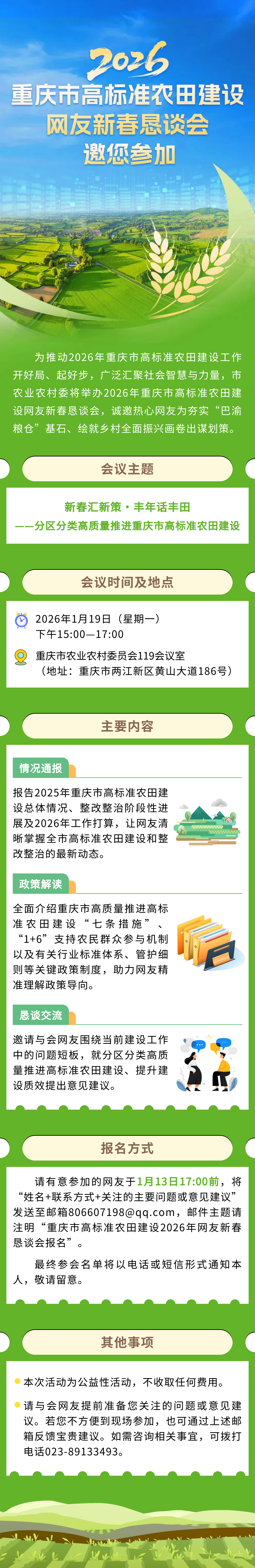 报名 | 重庆市高标准农田建设“ 2026年网友新春恳谈会”邀您参加