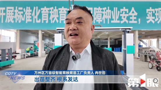 万州区万亩级智能育秧育苗工厂负责人冉世田:“出苗整齐、根系发达。一条流水线一个小时能育2000盘秧,满足80亩大田用秧,我们现在单批次能供3万亩大田用的秧。”