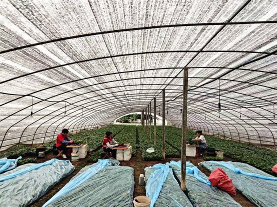记者走进蔬菜基地看到,一排排高标准的日光温室遍布基地,村民们穿梭其间,各自忙碌。“当下正好符合香菜的最佳生长温度,且出苗率高。”村民易正桥一边给刚撒下的香菜种子覆盖薄土,一边介绍道。