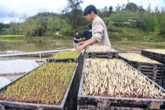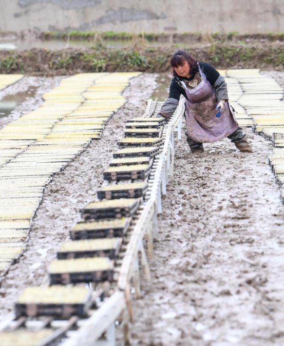 随着气温逐渐升高,在素有“渝东粮仓”之称的重庆市梁平区,农民抢抓农时进行水稻育秧等工作,田间地头一派繁忙景象。