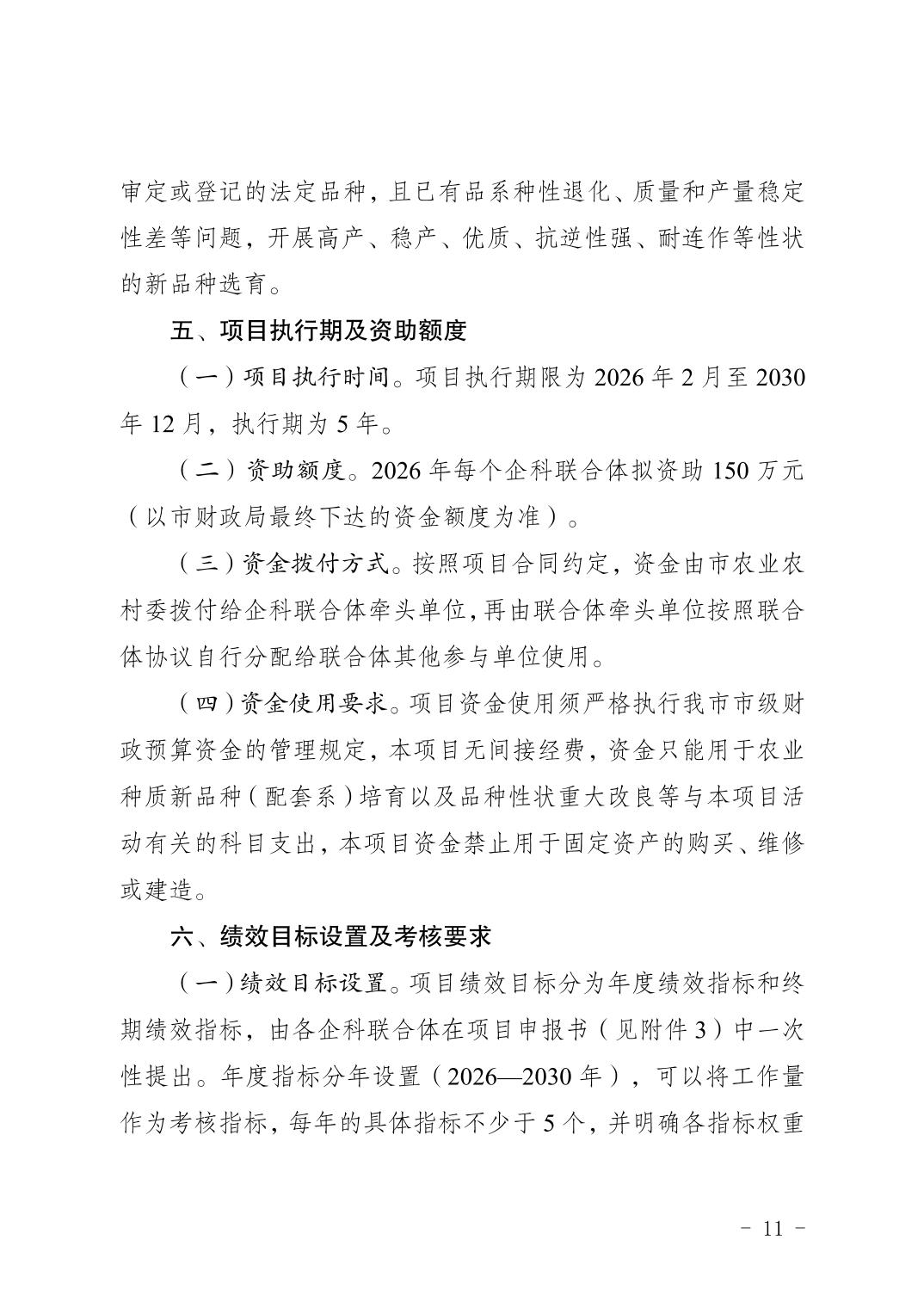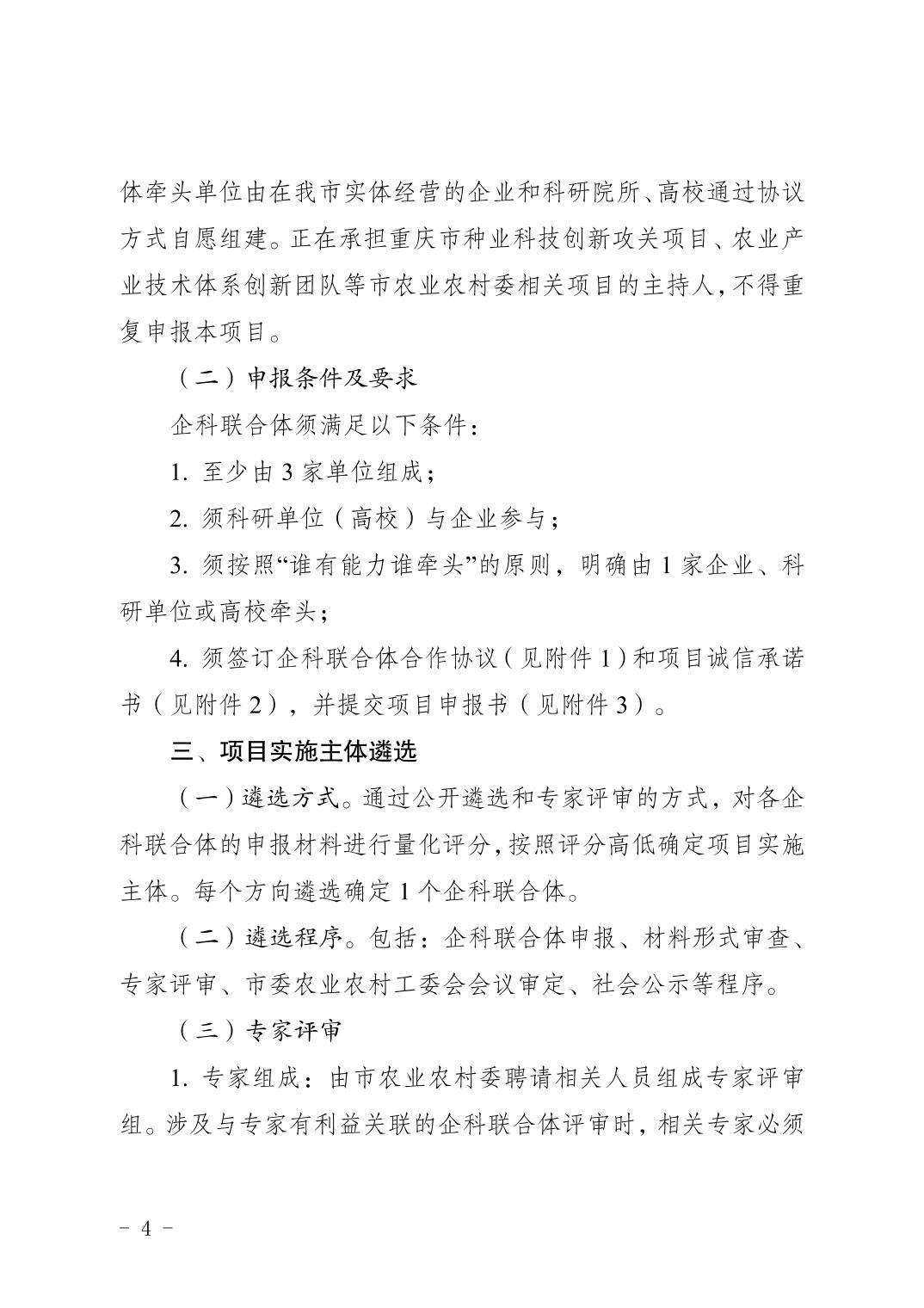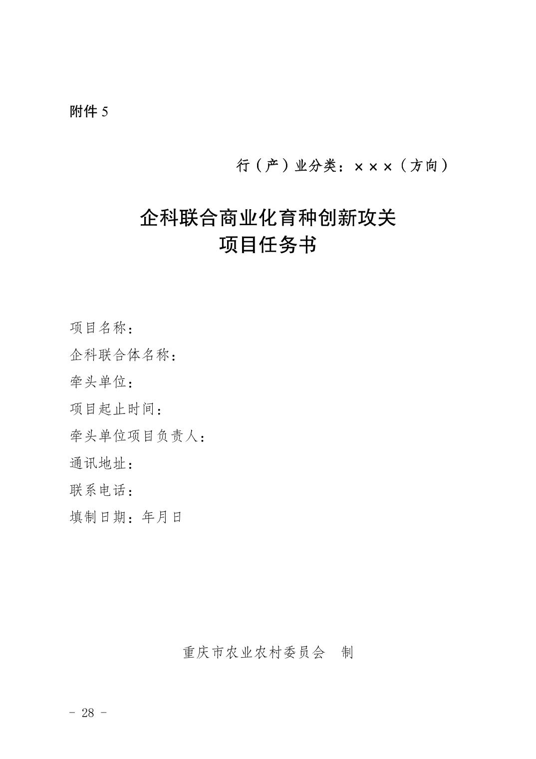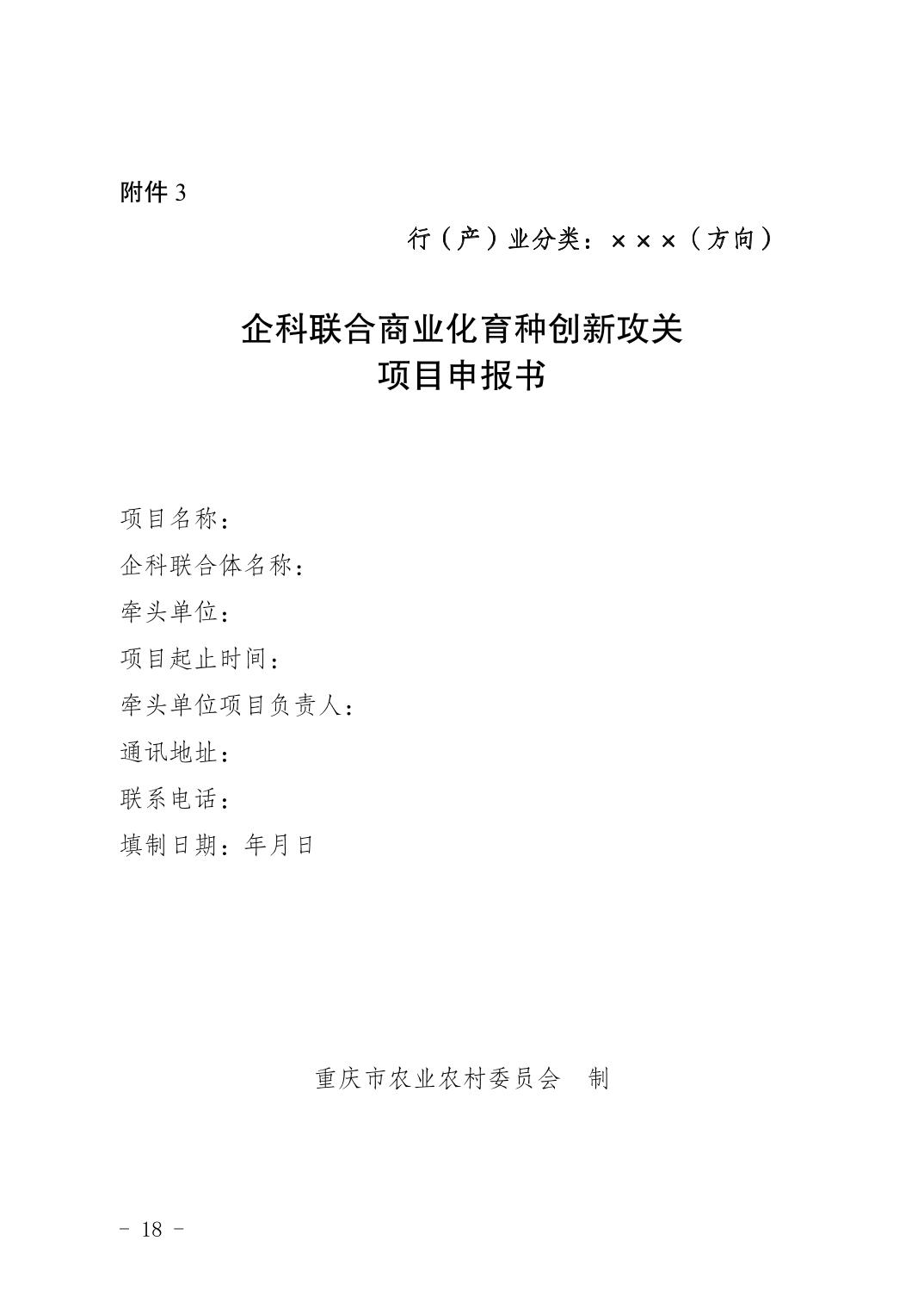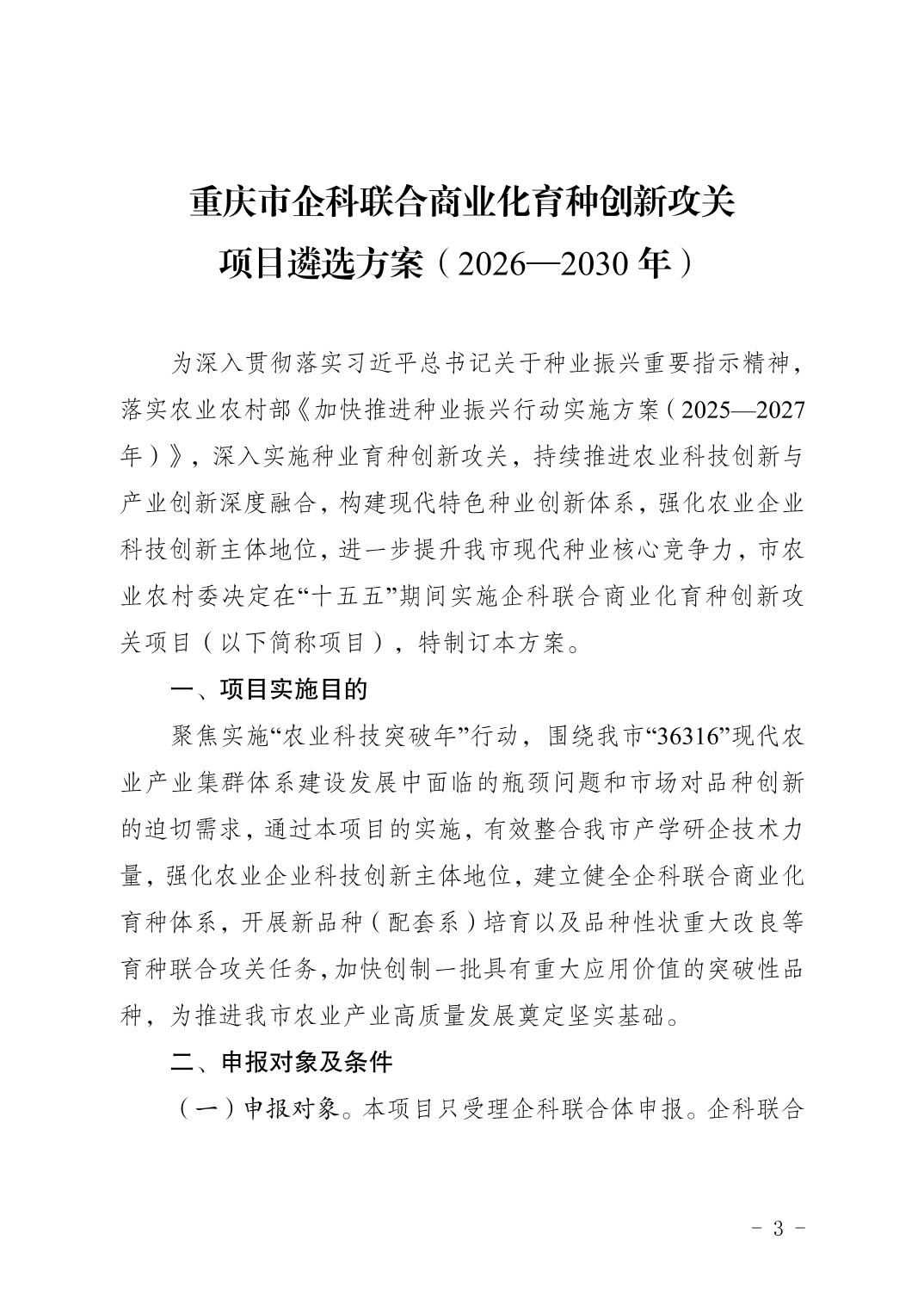 重庆市农业农村委员会关于印发企科联合商业化育种创新攻关项目遴选方案(2026——2030年)的通知
