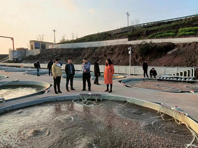 在丰都农发集团龙孔镇新湾水库圈养设施渔业示范基地,专家服务团一行详细查看水库圈养系统运行情况,对尾水处理系统改造方案提出了更加科学、合理的建议,并对养殖品种筛选、养殖密度设置等方面进行了建议指导。