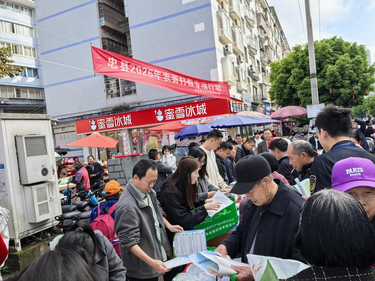 为进一步规范农资市场秩序,筑牢农产品质量安全防线,保障春耕农业生产平稳有序,4月16日,忠县农产品质量安全中心联合县农业农村委安全监管科、粮油经作科、畜牧兽医渔业科、县农业综合行政执法支队等8个科室、直属单位,在拔山镇举办2026年放心农资打假专项治理暨食用农产品承诺达标合格证“亮证”宣传活动。