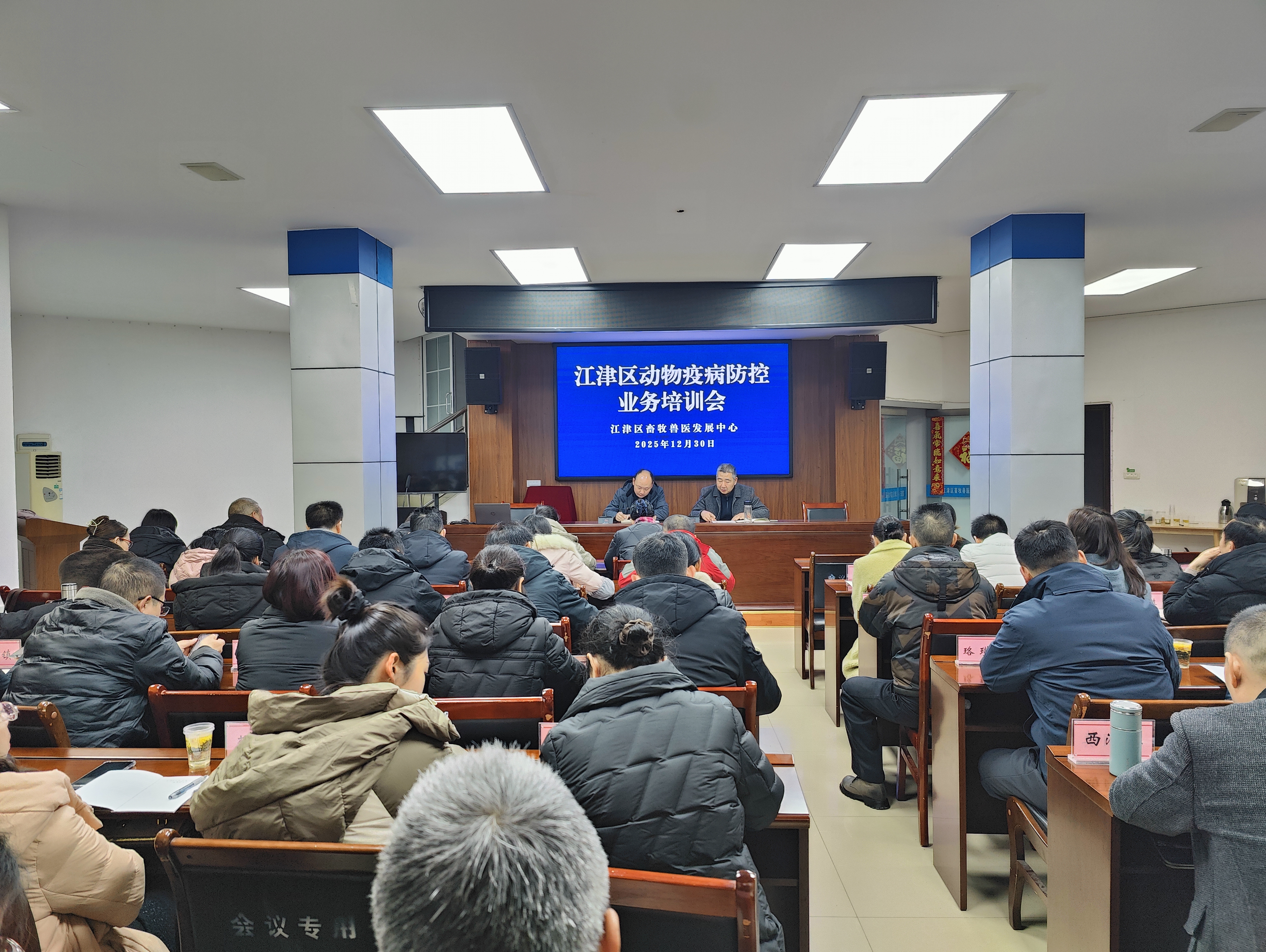 为深入贯彻落实全市冬春季重大动物疫病防控工作培训视频会议精神,切实筑牢我区动物疫病防控防线,全面提升防疫人员业务素养与实操能力,12月30日,我区组织召开了动物疫病防控业务培训会。区畜牧兽医发展中心分管领导及相关人员,各镇(街)产业发展服务中心畜牧兽医工作负责人、畜牧云平台管理人员、动物检疫证章标志管理人员共70余人参会。