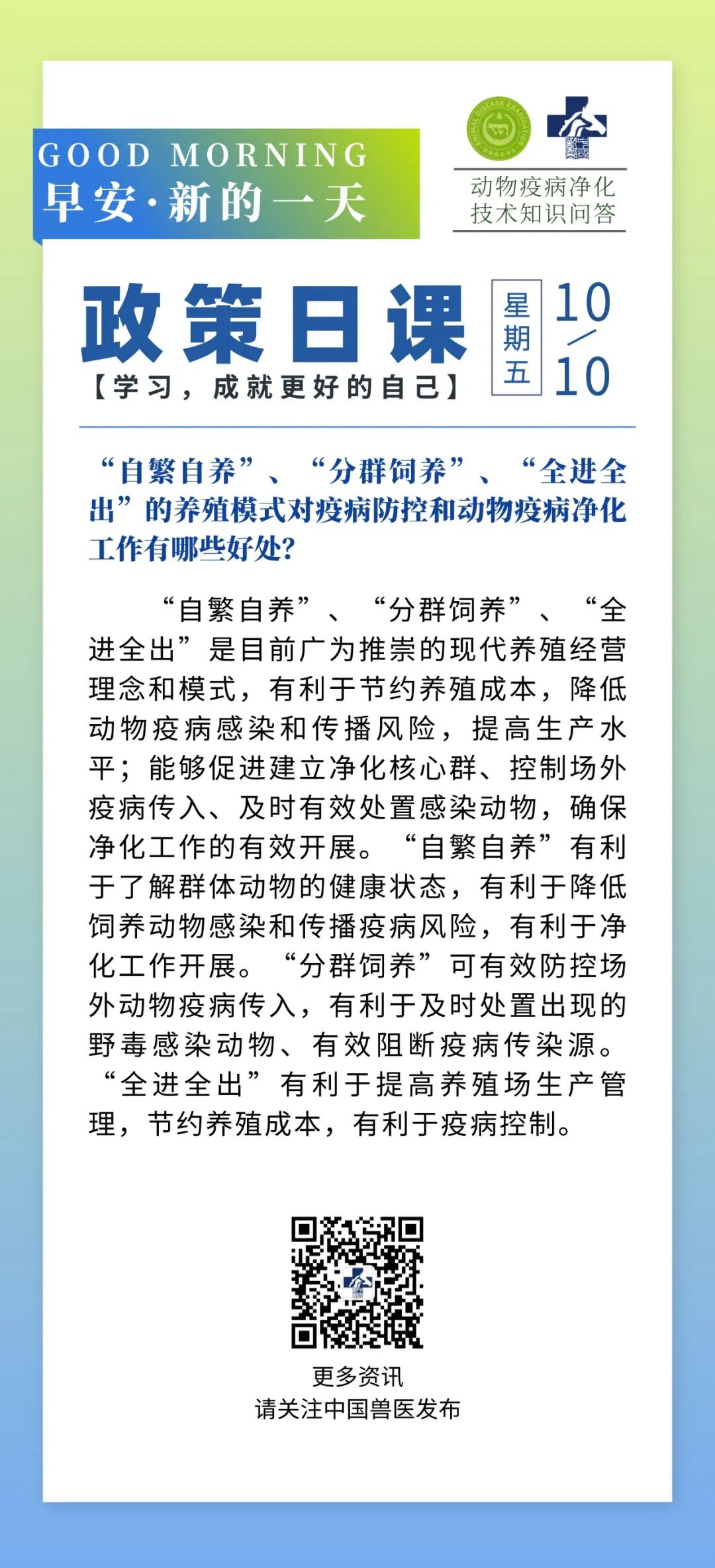政策日课 | “自繁自养”、“分群饲养”、“全进全出”的养殖模式对疫病防控和动物疫病净化工作有哪些好处?