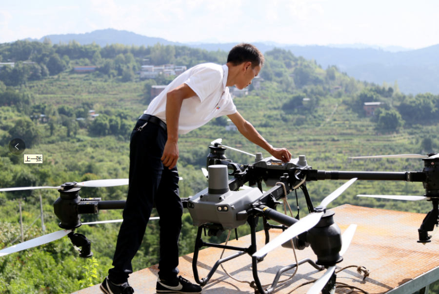果园负责人正在调试无人机。刘婷摄