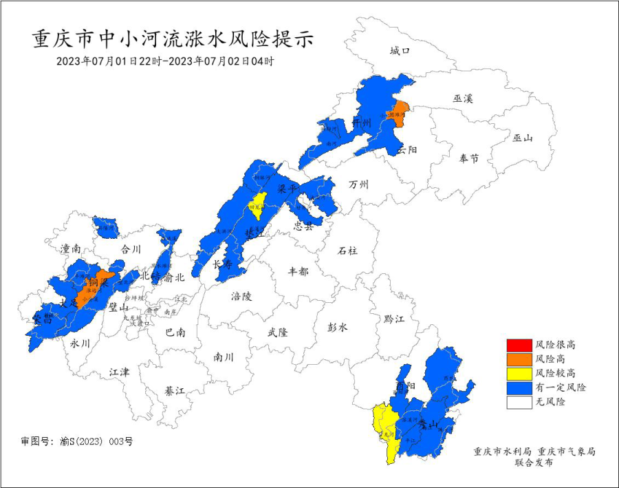 重庆市水利局和重庆市气象局2023年7月1日22时联合发布中小河流涨水风险提示: