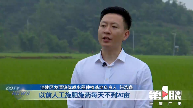 涪陵区龙潭镇优质水稻种植基地负责人任浩淼介绍,以前人工施肥施药每天不到20亩,相比这样的传统施肥撒药,采用无人机作业现在每天能够达到200多亩,大大提升了效率,减少了人工成本。