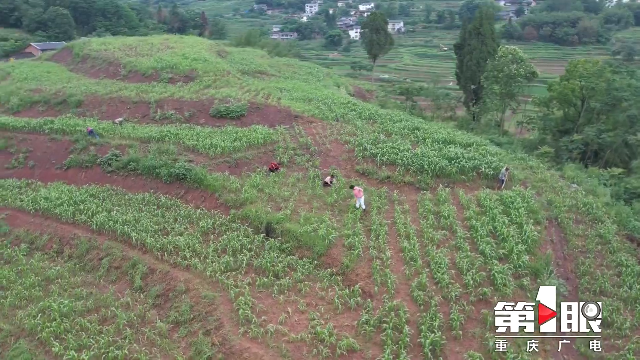 在綦江永新镇垭口村的高标准农田里,高粱正拔节生长,工人们正穿梭在田间,开展除草管护。