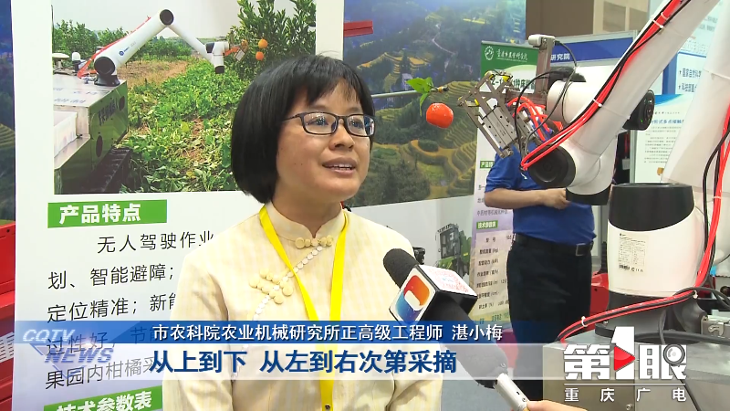 市农科院农业机械研究所正高级工程师湛小梅向第1眼记者介绍说,“在识别的范围内从上到下、从左到右次第采摘,机器人8秒就能采摘一个果子,适合标准化果园的采摘作业,非常自动化、节约人工。”