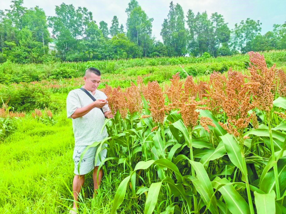 ▲任圣在查看高粱结果率