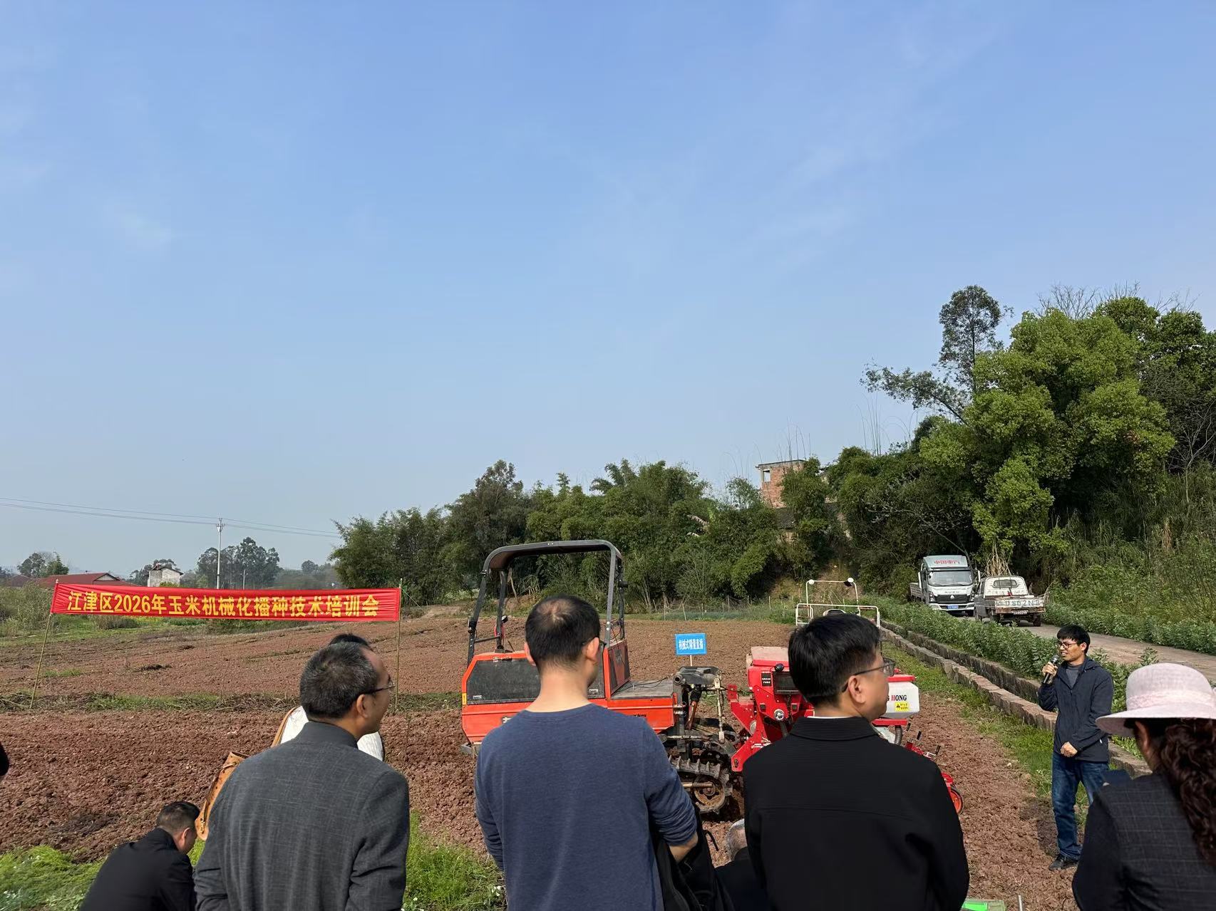 为扎实推进 2026 年玉米生产有关工作,示范推广玉米机械化播种技术,提升全区玉米种植标准化、规模化、机械化水平,近日,江津区农业农村委员会在白沙镇芳阴村举办全区2026年玉米机械化播种现场培训会。有关镇街农业技术人员、玉米种植业主代表共约80人参加,并邀请重庆市农科院专家到场授课。