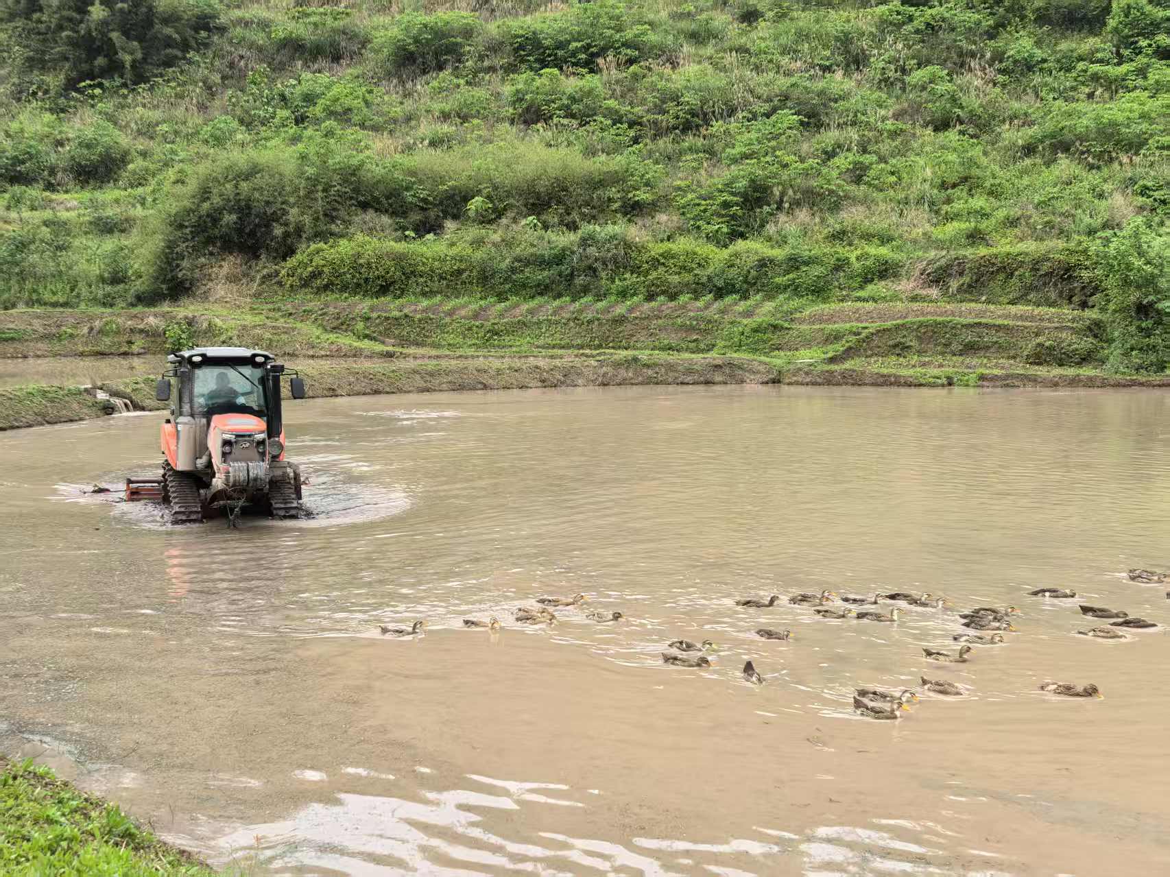 旋耕平田机来回作业。(摄影:谢鹏飞)