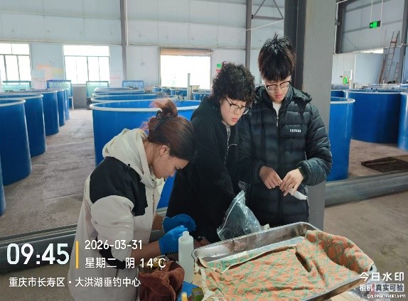 2026年1月30日、3月31日,重庆市水产科技创新联盟种业创新工作组组长、西南大学水产工程技术研究中心主任、水产学院李云教授率鳜鱼遗传育种团队先后赴合作企业潼南名优鱼养殖场、重庆大洪湖水产有限公司长寿基地,开展鳜鱼亲本群体电子标记、分子标记采样工作,为培育长江全雌鳜筛选优良性状的亲本。