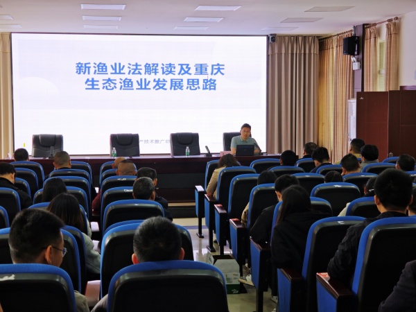 培训班上,市生态渔产业技术体系首席专家、市水产总站副站长翟旭亮正高级工程师做了《新渔业法解读及重庆生态渔业发展思路》专题报告,对新修订《渔业法》宣贯、养殖尾水治理、水产养殖滥用药整治等方面进行了系统性讲解,为推动资源节约、环境友好、质量安全型水产养殖发展指明了方向;重庆市农业科学院正高级工程师龙翰威分享了国内外设施渔业发展现状、循环水养殖系统、相关设施工艺和设备、未来设施渔业发展方向;西南大学林仕梅教授详细地讲解了当前西南地区水产养殖面临的环保、生产、生态安全、产业转型等痛点问题,以及在新《渔业法》实施后水产养殖过程中需要关注的问题;内江师范学院水产学院史庆超副教授围绕池塘生态健康养殖,介绍了生态健康养殖模式以及模式流程中的应用场景和生产实例。