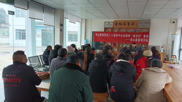 为深入学习宣传贯彻党的二十届四中全会精神,着力推动全会精神及乡村振兴战略在基层落地生根,按照市委农业农村工委工作安排,2026年1月21日至1月22日,市土地整治中心党支部组织党员突击队,由支部委员、副主任蒋中波带队,一行5人赴巫山县开展党的二十届四中全会精神“进农村”宣讲。本次“进农村”宣讲覆盖巫山县15个村社,灵活采取院坝会、座谈会等形式开展,共计300余名基层干部和农民群众参加。